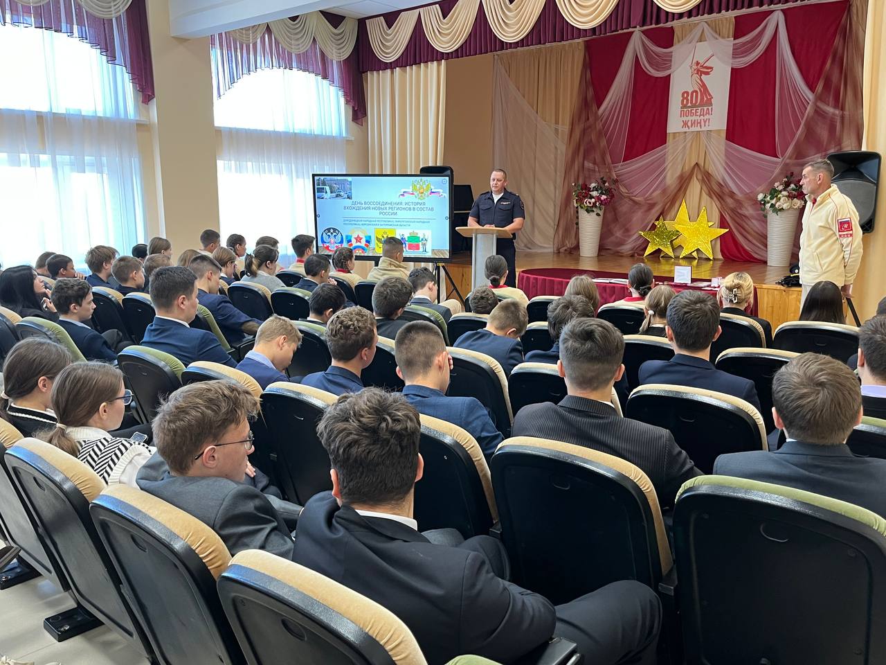 В МБОУ "Тетюшская СОШ №1 им.Ханжина П.С." в рамках месячника правового просвещения и Дня воссоединения с Россией ДНР, ЛНР, Запорожской и Херсонской областей прошло патриотическое мероприятие.