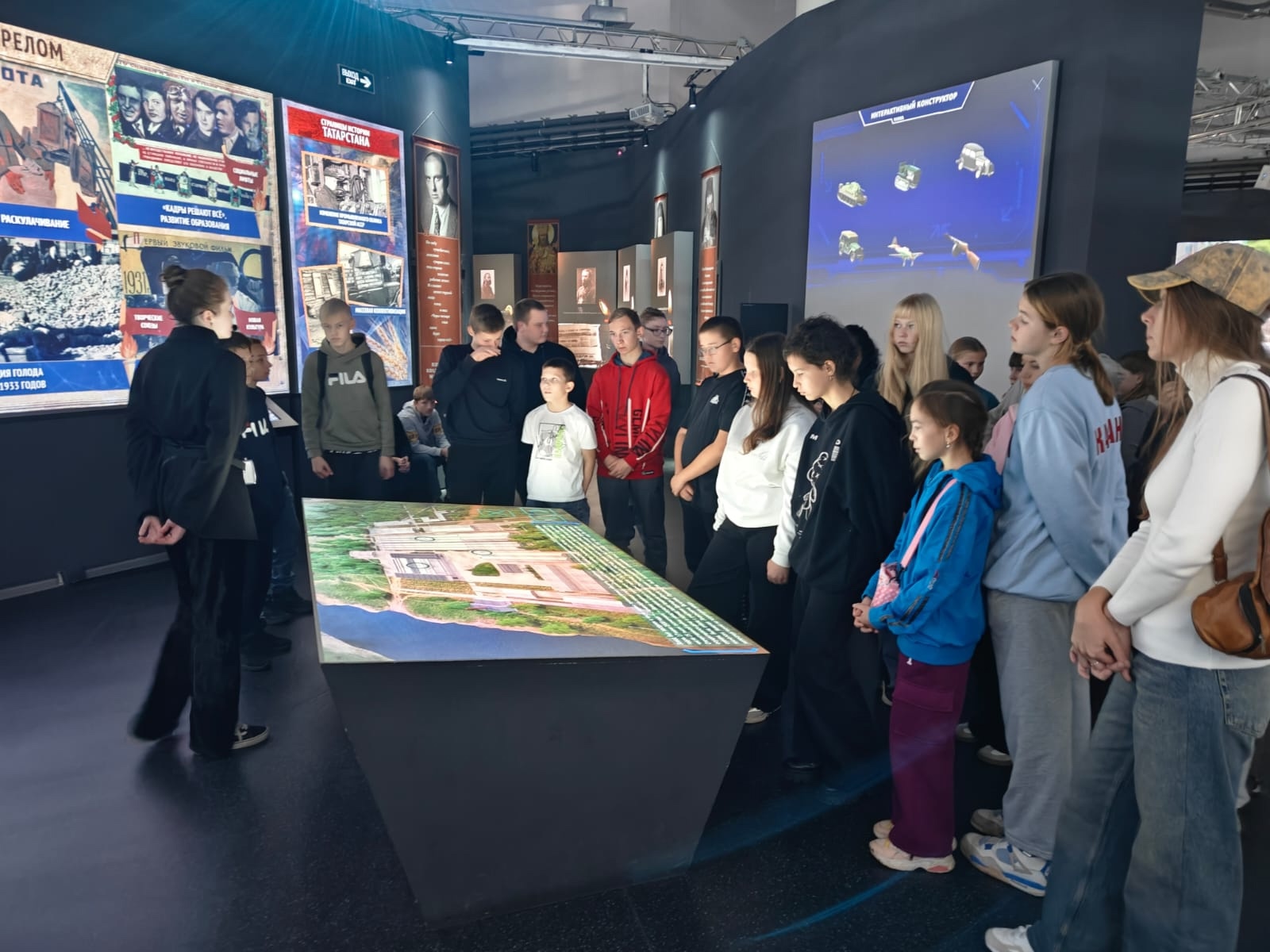 В рамках реализации проекта «Билет в будущее» по профориентационной работе, национального проекта "Молодежь и дети", подпроекта "Всё лучшее детям" обучающиеся МБОУ «Тетюшская СОШ №2 им. А.А. Соколовского» под руководством классного руководителя Курзаевой Я.В. централизованно посетили мультимедийную выставку в Историческом парке «Россия – моя история».
