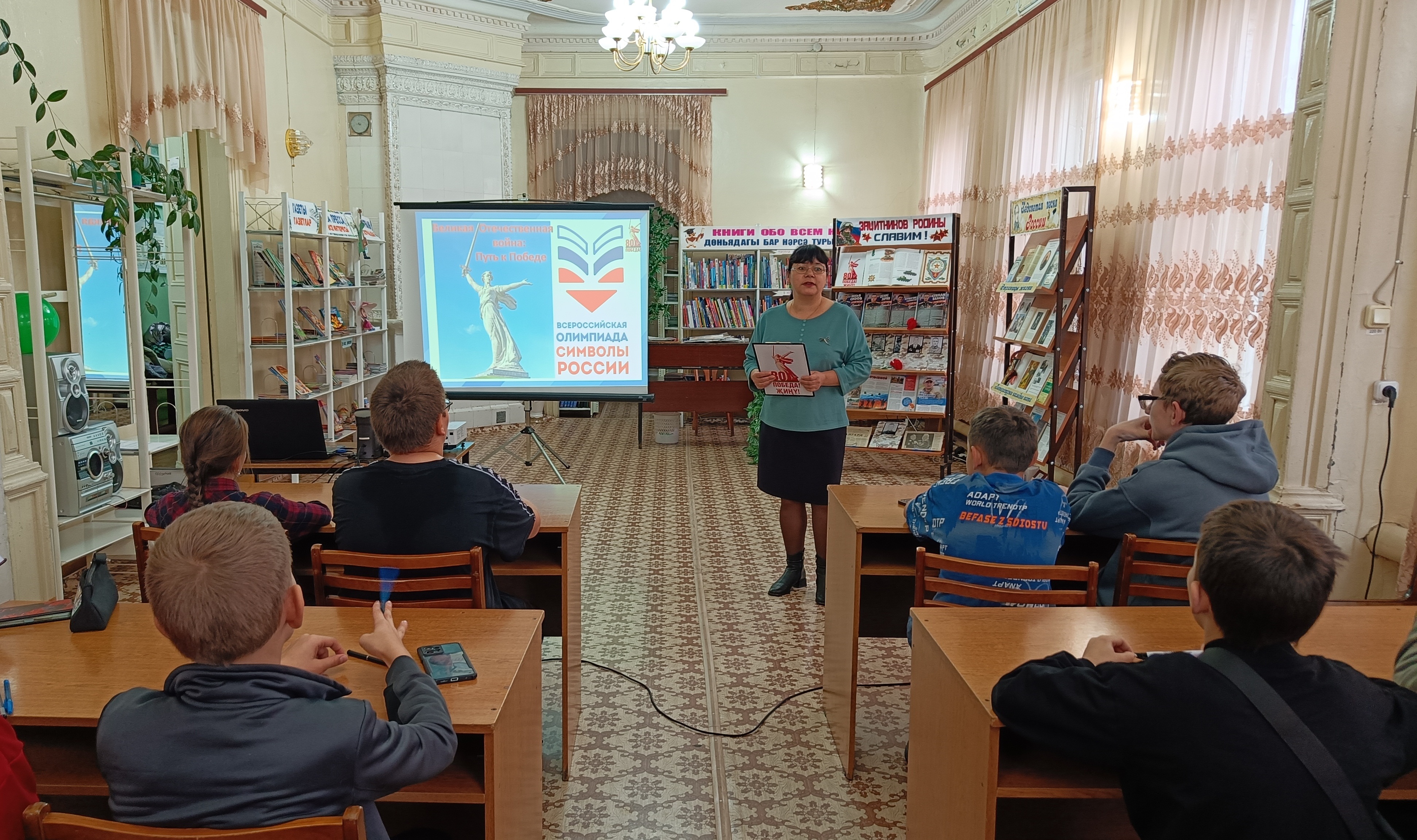 30 октября, на 14 площадках района сотрудниками МБУ «Тетюшская межпоселенческая библиотека» среди школьников был проведен первый этап ежегодной Всероссийской олимпиады «Символы России». В этом году олимпиада посвящена 80-летию Победы в Великой Отечественной войне. Её тема – «Великая Отечественная война: Путь к Победе».