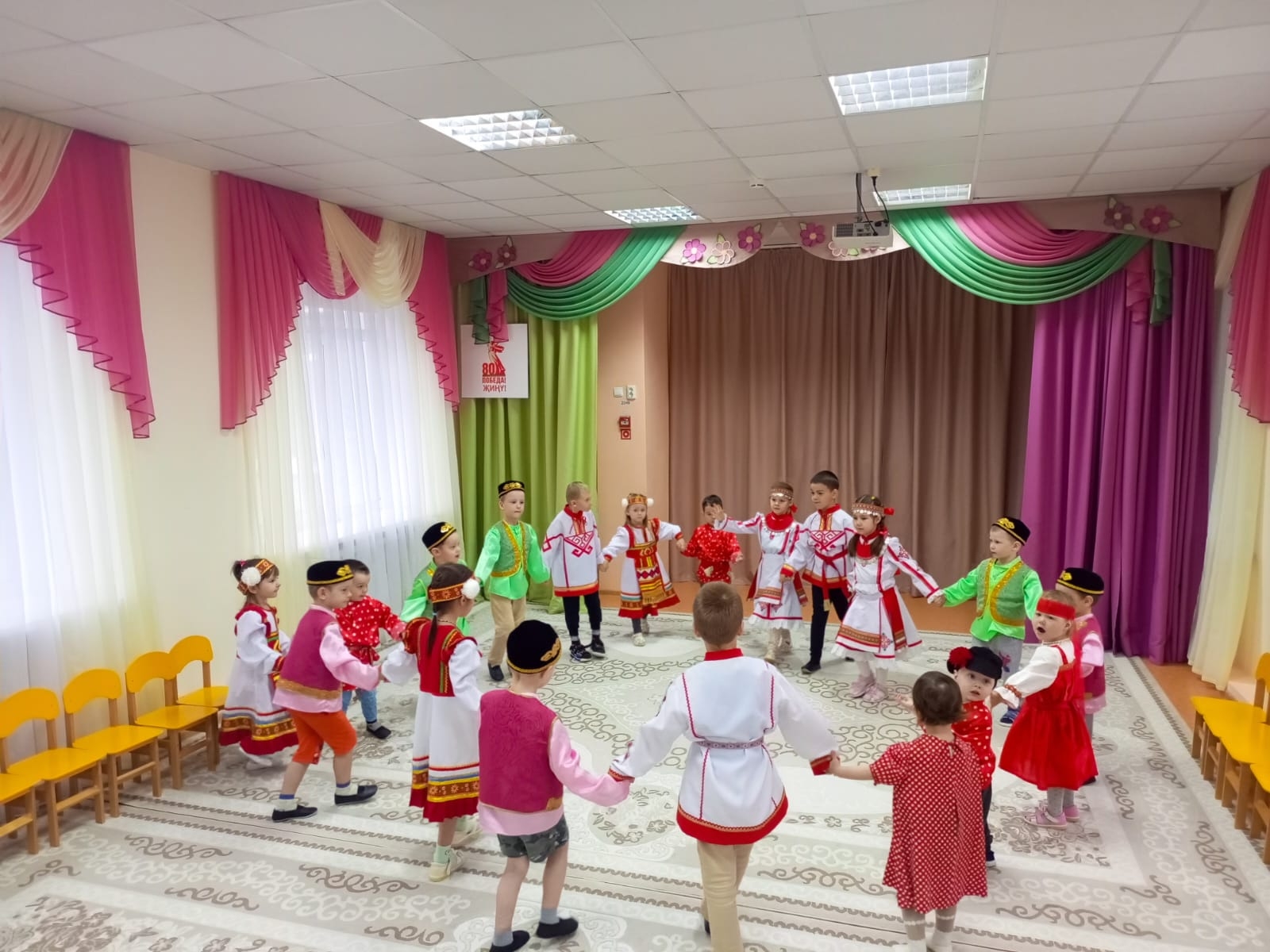 Ребята в национальных костюмах водили хороводы, танцевали, играли в народные игры.