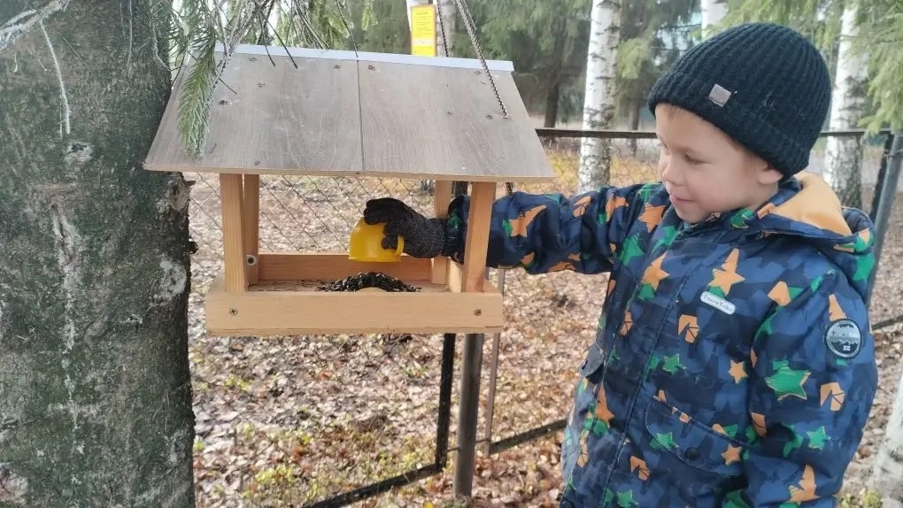 Вместе с родителями ребята изготовили кормушки. Затем воспитатель Морозкина И. В. помогла им разместить кормушки на территории школы и наполнить угощениями.