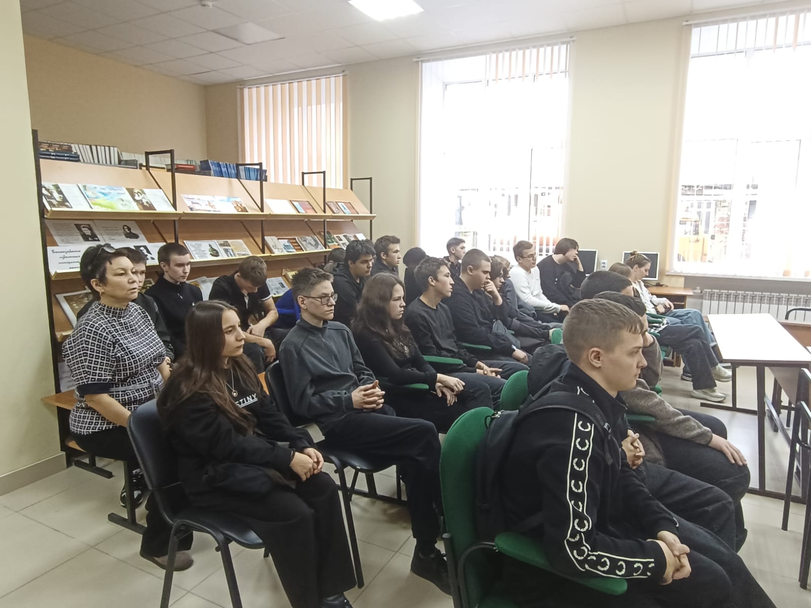 Сотрудники Центральной библиотеки провели для студентов 1 курса ГАПОУ "Тетюшский сельскохозяйственный техникум» урок мужества СВО: стойкость, верность, отвага". На мероприятие присутствовал ветеран специальной военной операции Сергей Гумеров. Он рассказал о своих боевых обязанностях, о том, как принимал участие в сложных операциях, о трудностях, которые необходимо было преодолеть, сохраняя спокойствие и четкость действий. Библиотекарь Наталья Ванюхина сделала видеообзор о Героях России, уроженцев Тетюшского муниципального района.