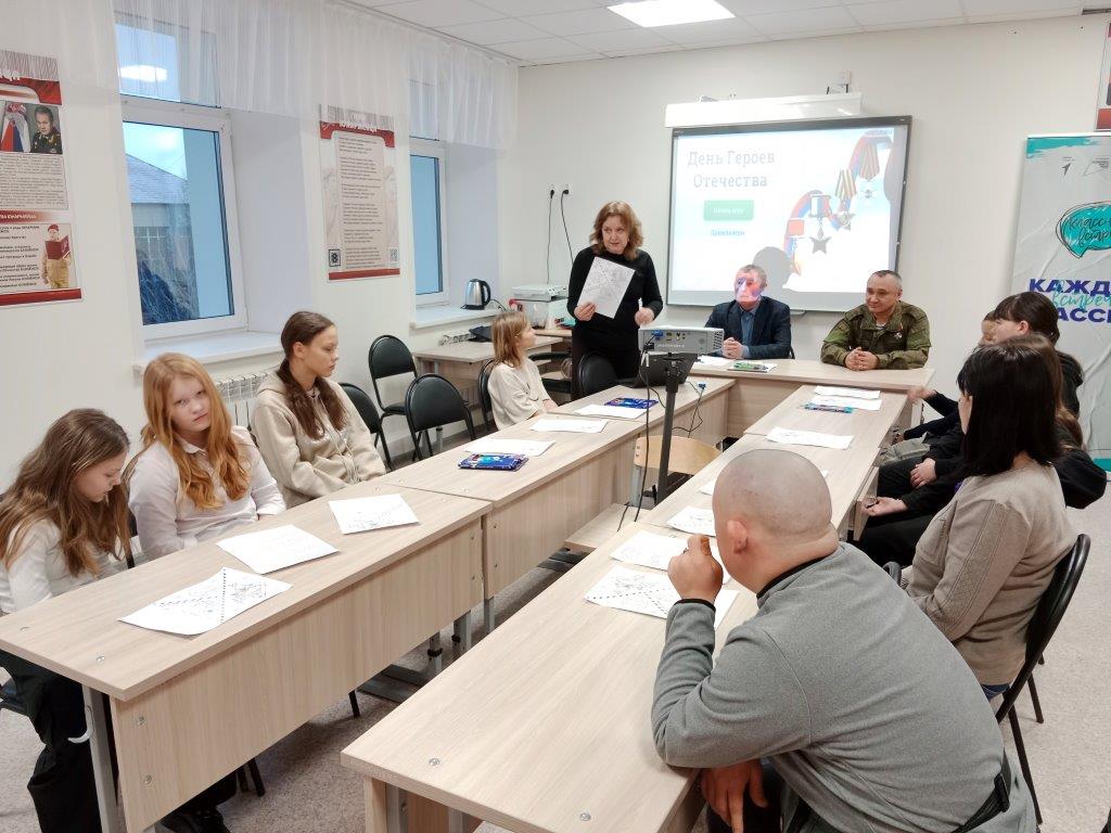 В рамках Года защитника Отечества, 80-летия Победы в Великой Отечественной войне, Дня Героев Отечества и с целью патриотического воспитания подрастающего поколения, совместно с Движением Первых организовано мероприятие «Учись у героев Отчизну любить», для получателей социальных услуг комплексного центра социального обслуживания населения «Тетюшское сияние». В мероприятии приняли участие социальный координатор фонда «Защитники Отечества» и участник специальной военной операции.