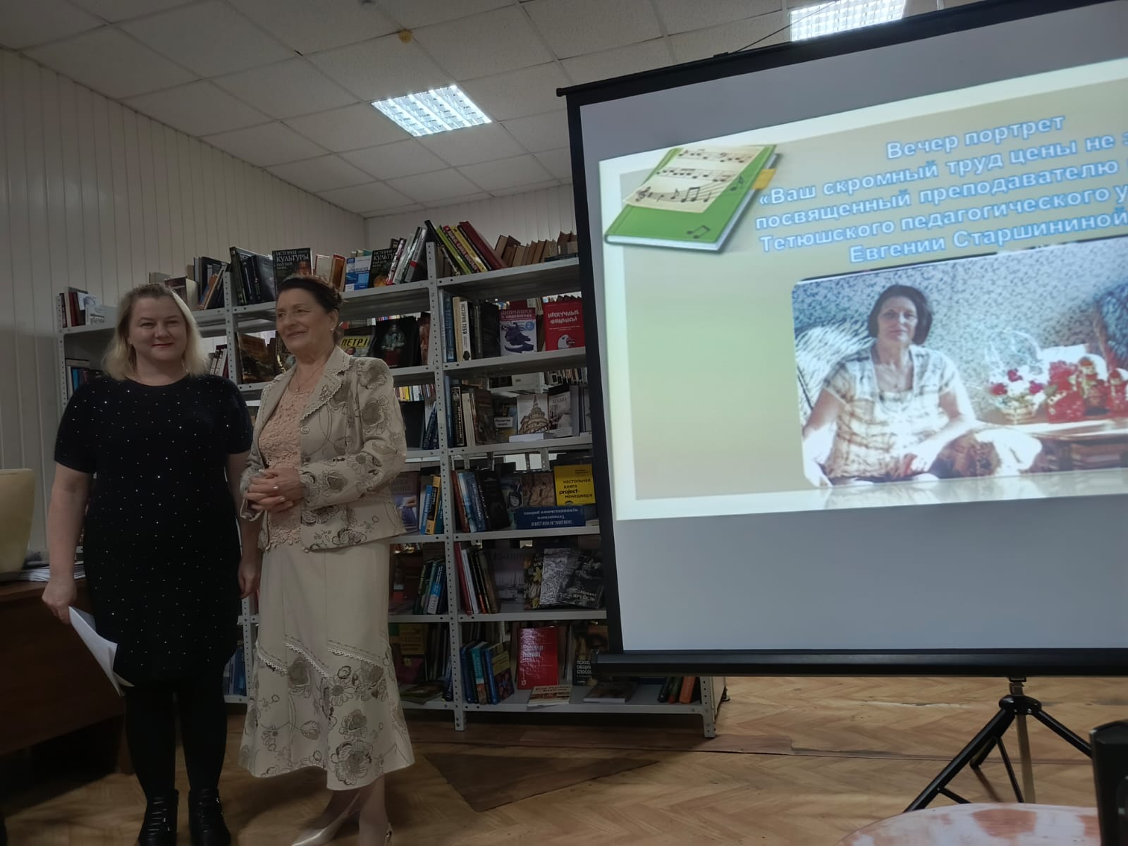В рамках программы «Земляки известные и неизвестные» сотрудники Центральной библиотеки провели для широкого круга читателей вечер-портрет «Ваш скромный труд, цены не знает», посвящённый преподавателю Тетюшского педагогического училища Евгении Старшининой. На мероприятии были представлены материалы о ее жизни и работе, её вкладе в образование и воспитание молодых людей. Гости вечера смогли узнать больше о её профессиональном пути, педагогических принципах и достижениях. Вечер-портрет стал данью уважения и признания заслуг преподавателя перед обществом и образованием. Украшением мероприятия послужили музыкальные номера в исполнении Евгении Старшининой. Мультимедийная презентация содержала фотографии из семейного архива в разные периоды ее жизни.