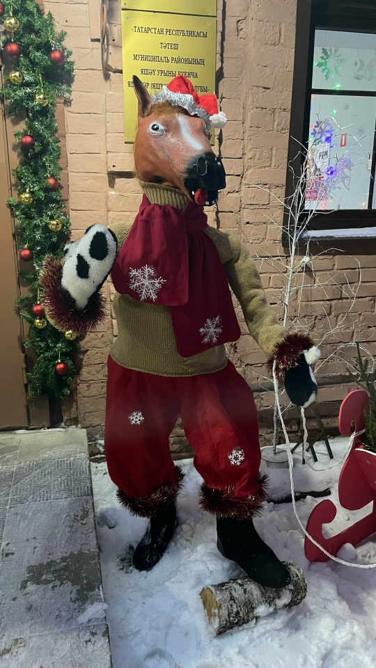 Тематическое оформление посвятили символу года — Лошади. Этот образ из мифологии и культуры разных народов олицетворяет процветание, обновление и возрождение. Работники изобразили Коня, который везет на санях праздничную ёлку.