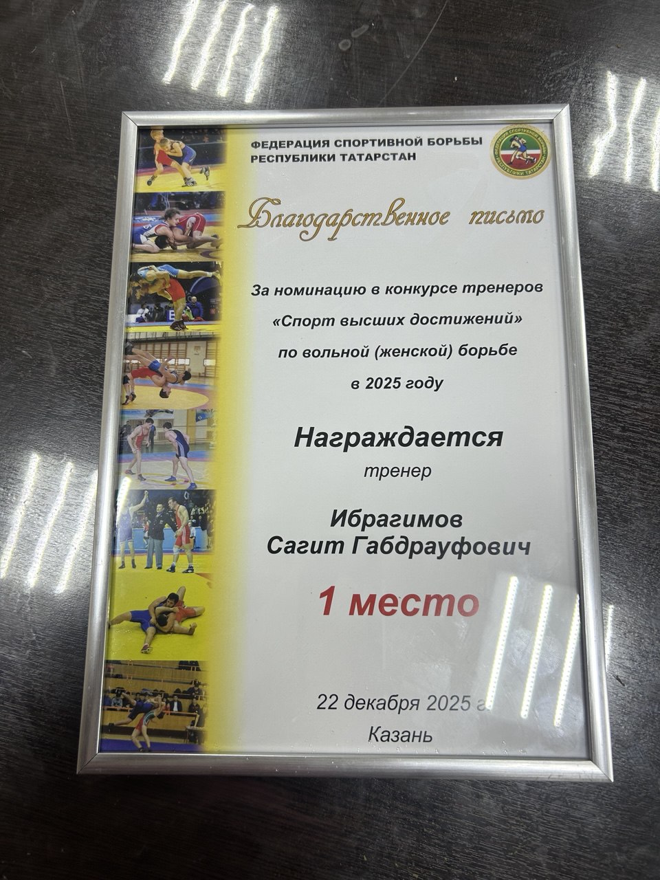 Ибрагимову Сагиту и спортсменкам были вручены Благодарственные письма от Федерации спортивной борьбы РТ за высокие спортивные достижения в 2025 году.