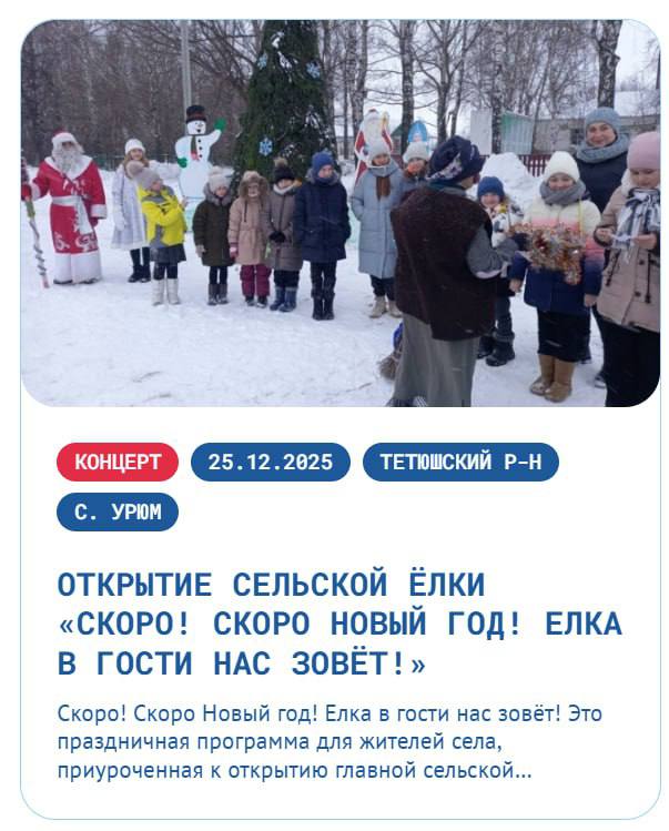 Концерт с участием сельских коллективов, интерактивная игра с Дедушкой Морозом и Снегурочкой, детский конкурс рисунков на снегу.