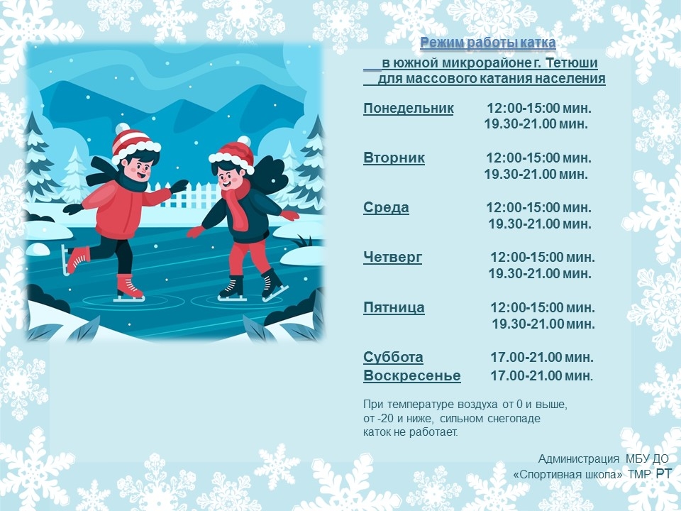 Режим работы катка в Южном микрорайоне г. Тетюши