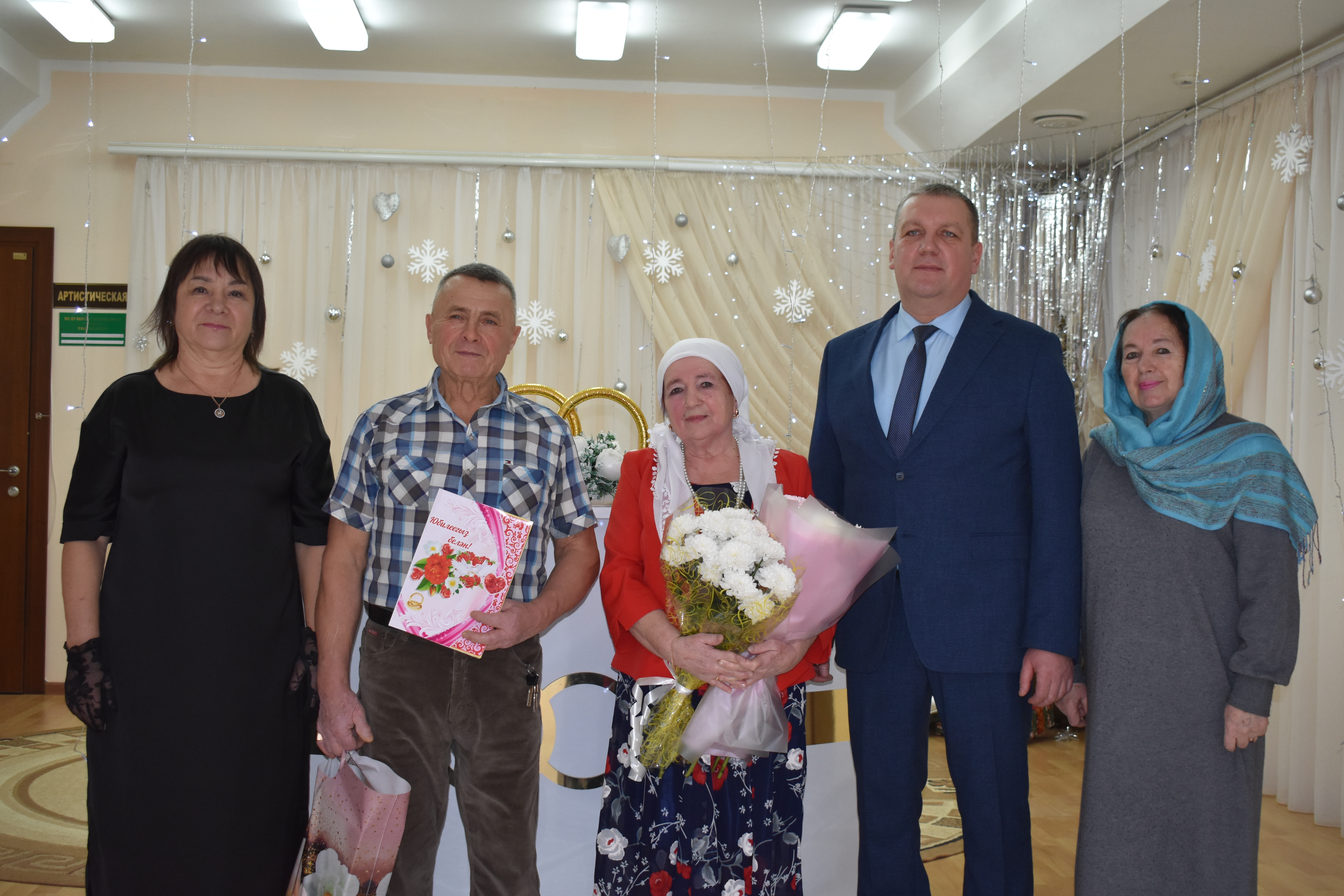 В день юбилея гостями у супругов были и поздравляли со значимым событием их дети, внуки, юбилярам были вручены поздравительную открытки от имени Главы района Рамиса Хатыповича Сафиуллова и памятные сувенир с пожеланием активного долголетия, благополучия, теплоты и внимания родных и близких людей. Поздравляем!