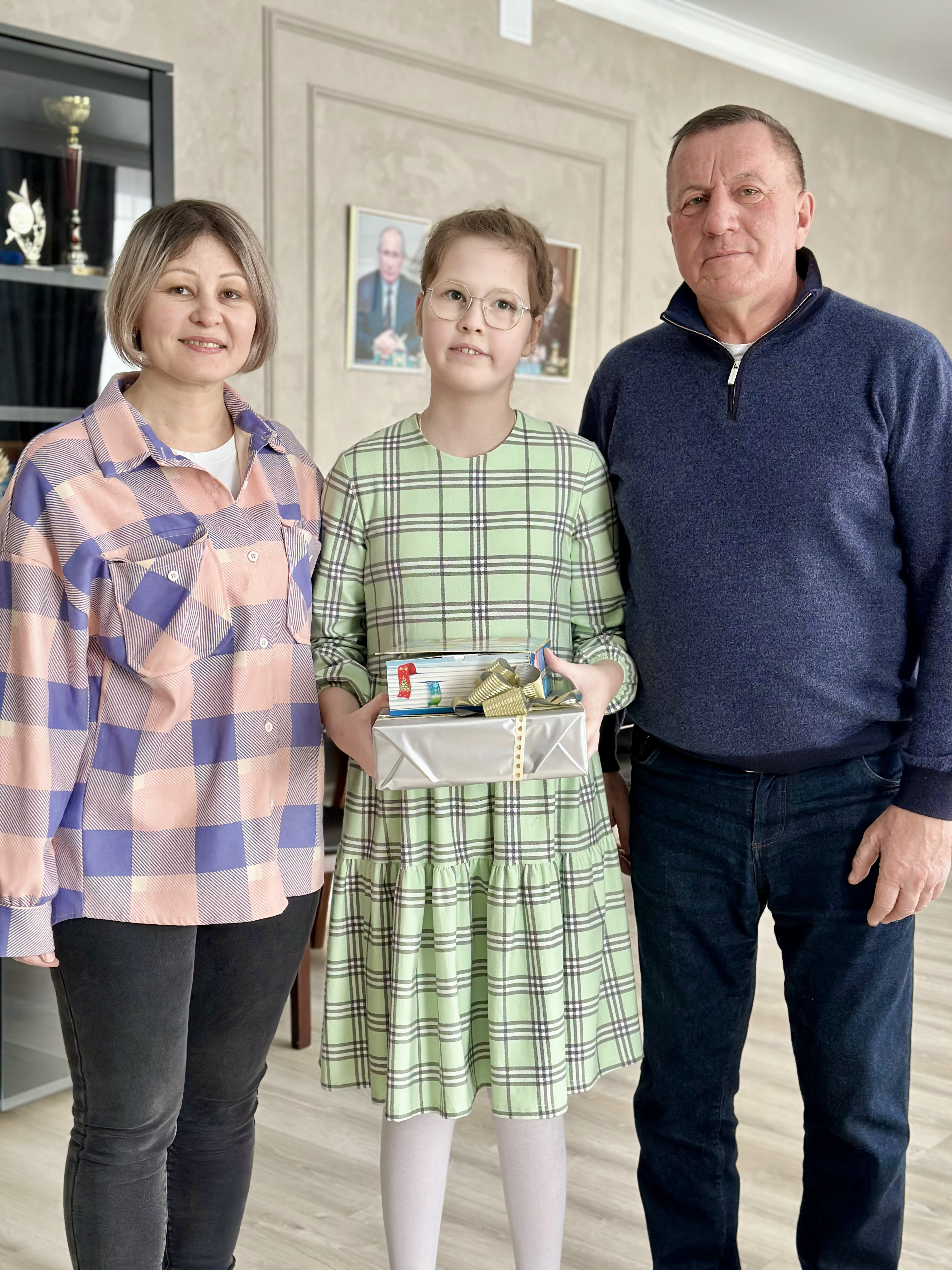 Рамис Сафиуллов поздравил Пелагею и её семью с наступающими праздниками, пожелал крепкого здоровья, счастья и успехов.