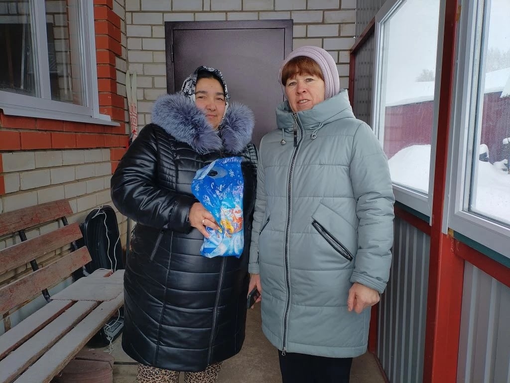 В рамках Всероссийской акции «Новый год в каждый дом» работники культуры села Алабердино поздравили семьи участников СВО с Новым годом, вручили небольшие подарки, пожелали всем семьям добра, здоровья и всего самого наилучшего.