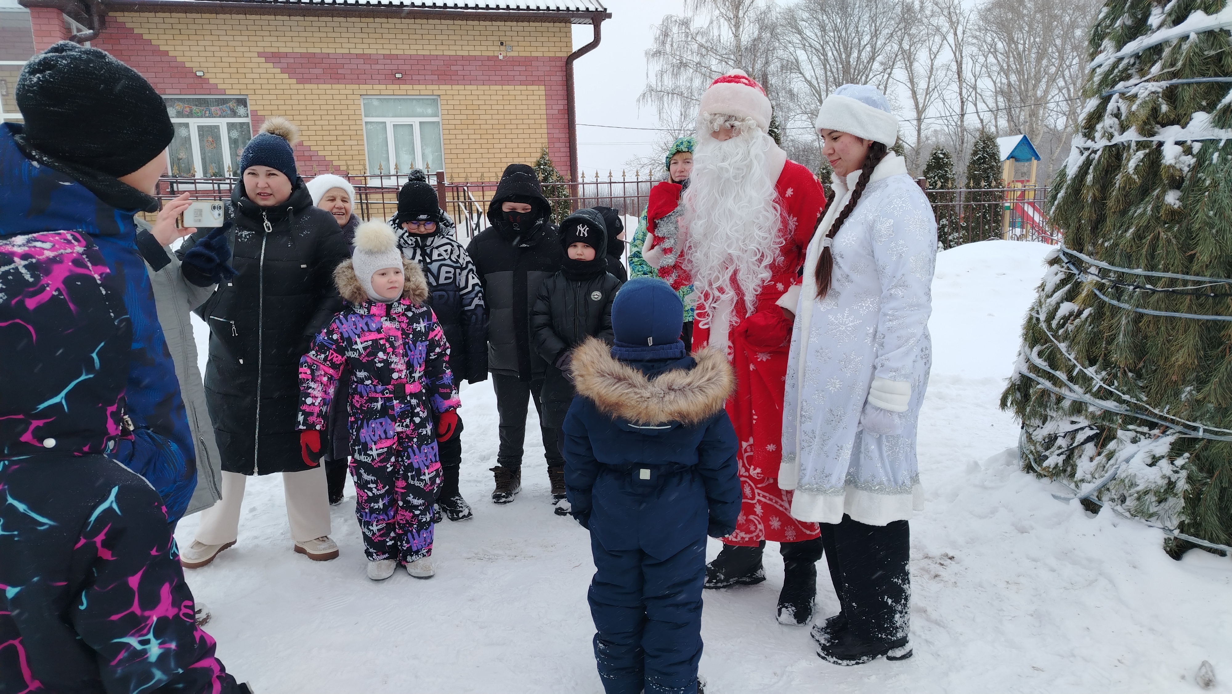 Мероприятие прошло в виде эстафеты, где ребята выполняли задания на ловкость и смекалку. В гости к ребятам пришли Дед Мороз и Снегурочка. Сказочные персонажи провели игры у елки, загадали загадки и водили вместе с детьми хоровод у новогодней елки.