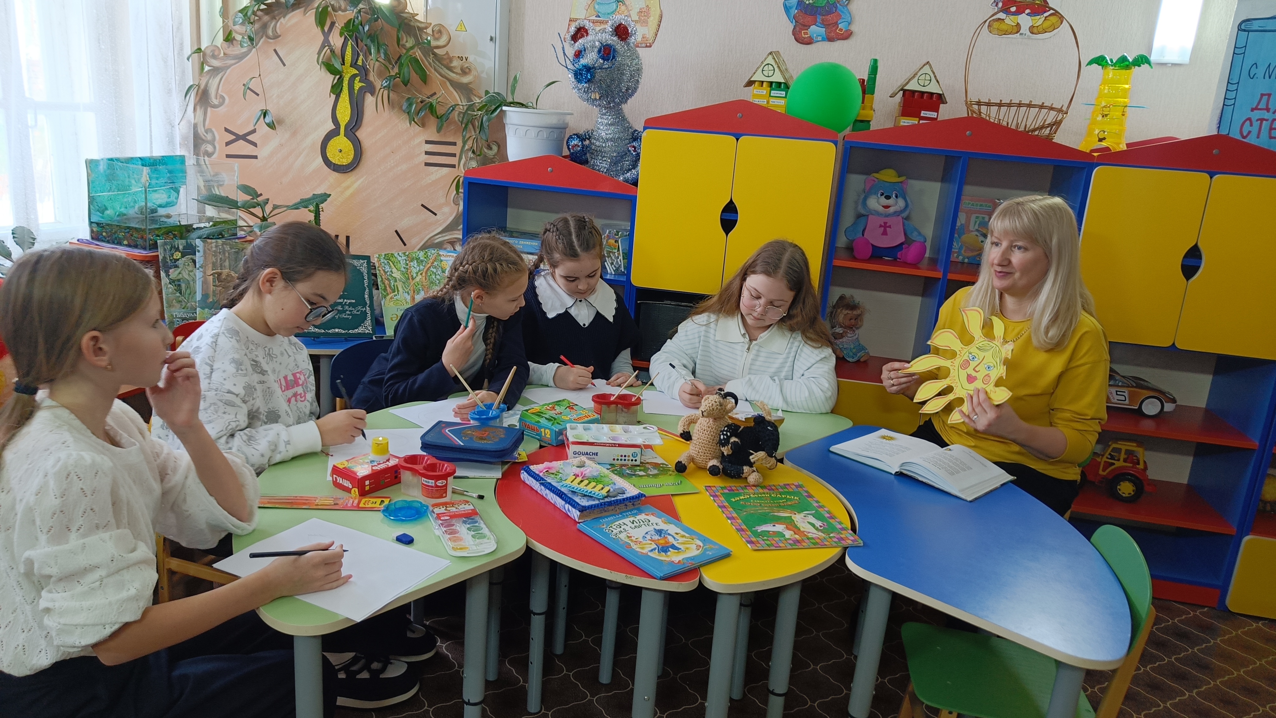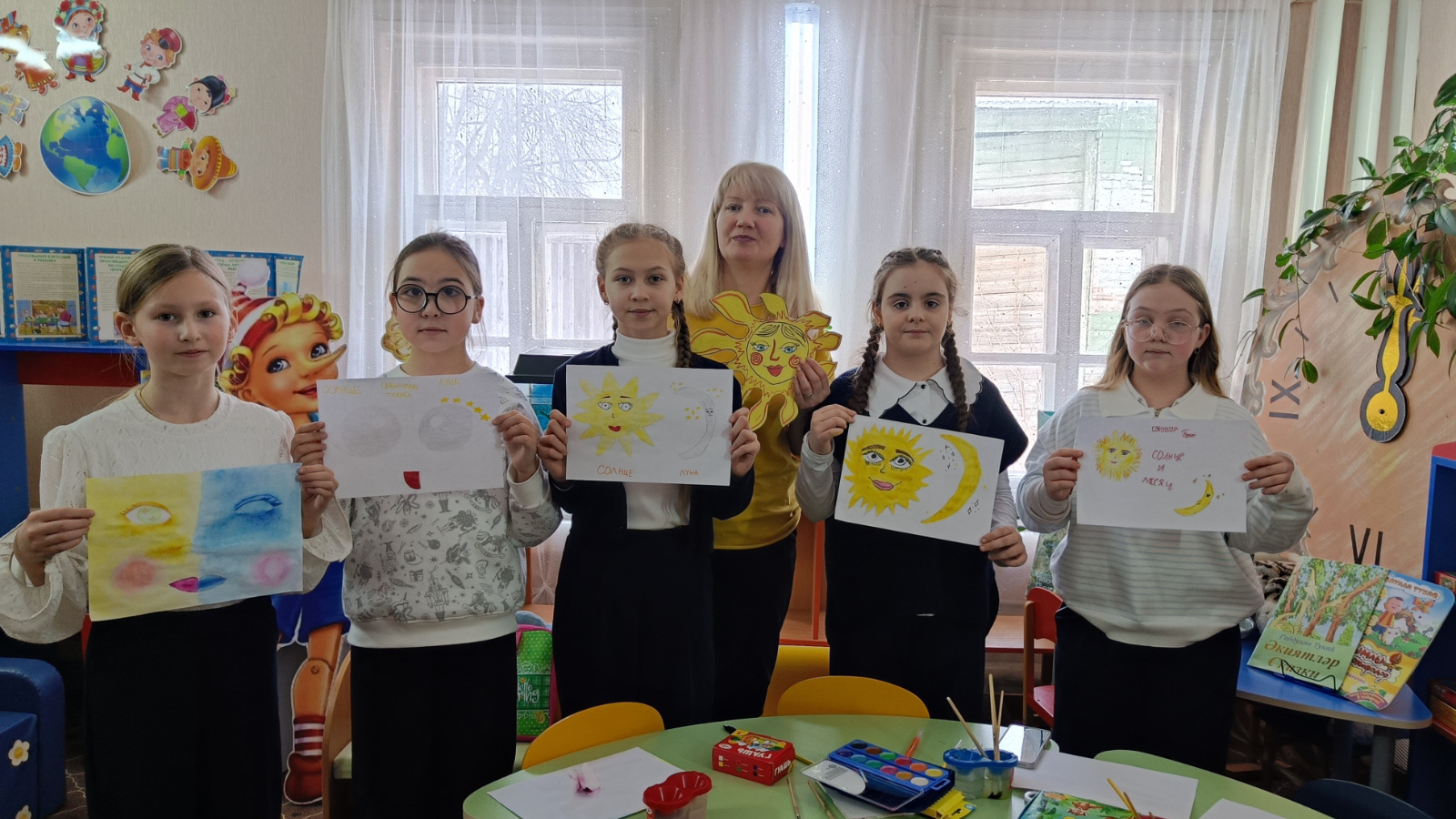 Библиотекарь рассказала о жизни и творчестве Габдуллы Тукая, подчеркнув значение его произведений для национальной культуры. После прочтения и обсуждения стихотворения «Луна и Солнце» дети с увлечением приступили к творческому заданию — изображению понравившегося эпизода. Каждый ребёнок подошёл к работе индивидуально: ребята тщательно обдумывали композицию, выбирали цвета и детали, стараясь передать собственное видение поэтического текста.