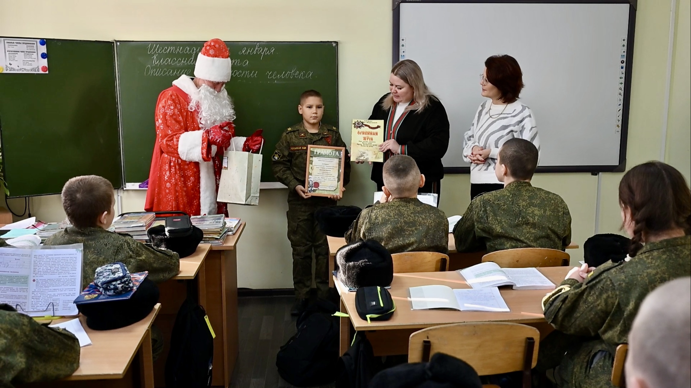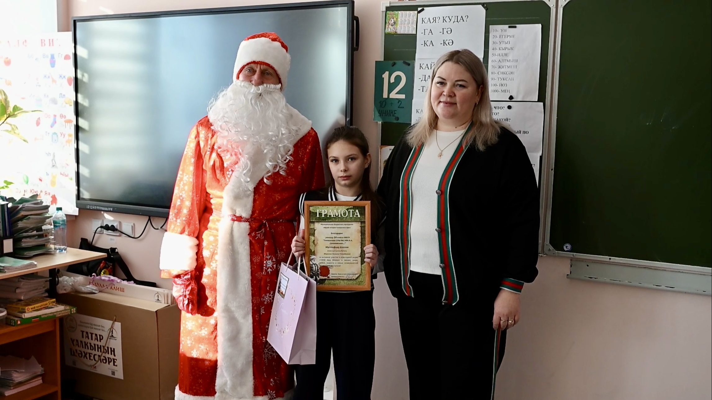 Три классных коллектива и десять авторов индивидуальных писем получили ценные подарки, которые Музейный Дед Мороз торжественно вручил ребятам лично.
