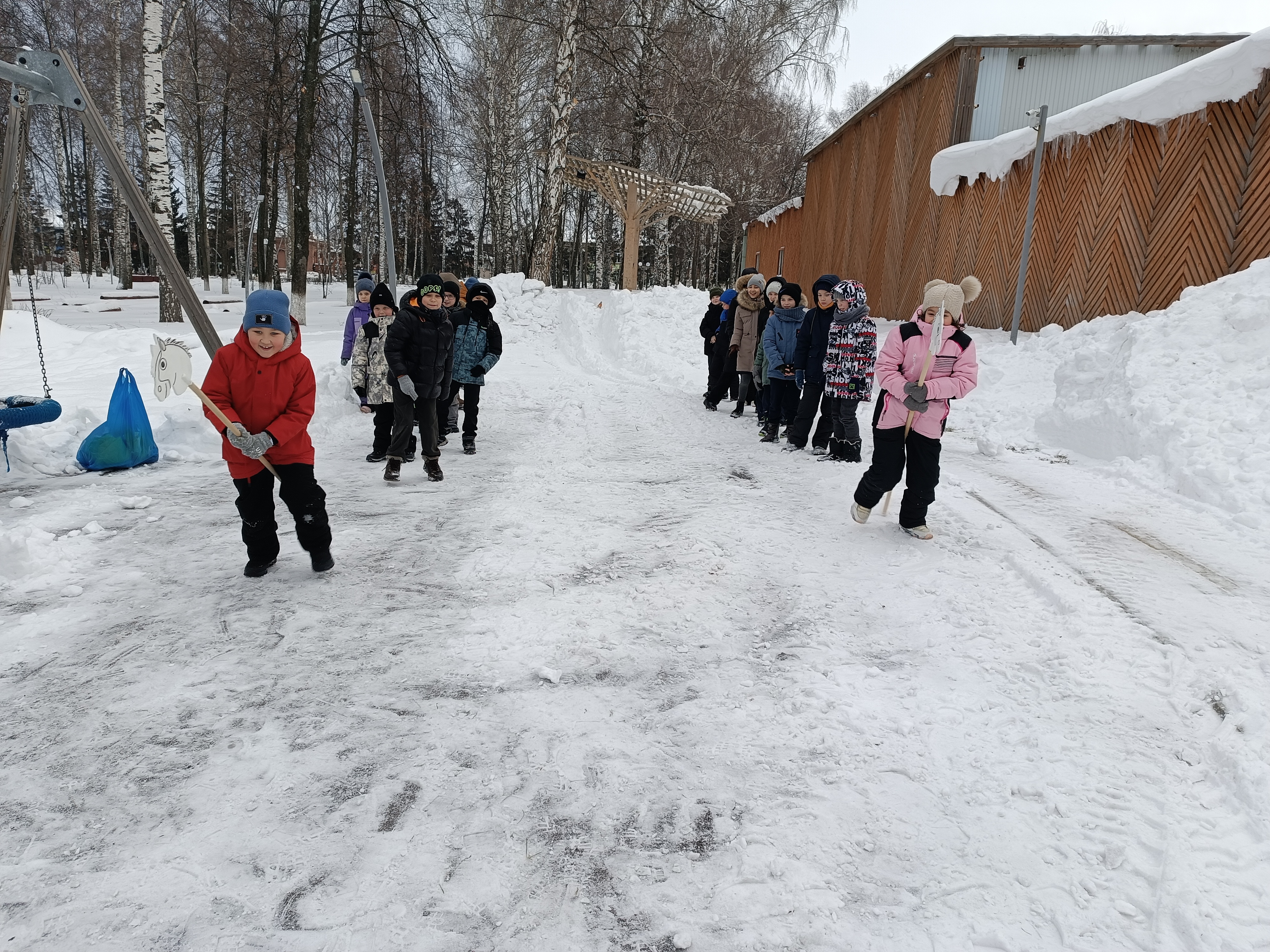 Катание на салазках, бег в мешках, эстафета «Перепрыгни через сугроб», зимние вышибалы, скачки на лошадях – всё это создало атмосферу настоящего зимнего праздника.