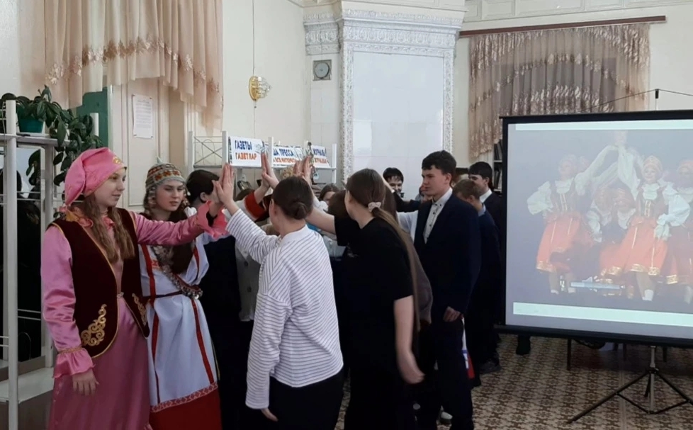 В Детской библиотеке в рамках проекта «Пушкинская карта» прошла познавательно-игровая программа «Хоровод народных культур», посвященная Году единства народов России. Ее участниками стали учащиеся 8 «А» класса МБОУ «Тетюшская СОШ №1 имени Ханжина П.С.» (классный руководитель Хамидуллина Г.Р.).