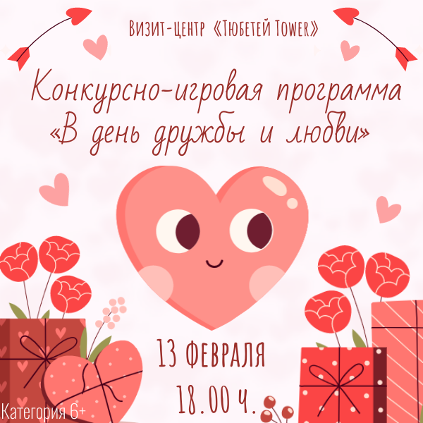 13 февраля в 18.00 ч. в визит-центре «Тюбетей Tower» г. Тетюши (северный микрорайон города) состоится конкурсно-игровая программа «В день дружбы и любви», в рамках национального проекта «Семья». Вас ждут увлекательные конкурсы, веселые игры и незабываемые моменты, которые подарят массу позитивных эмоций. Справки по телефону: 25758. Ждем всех желающих!