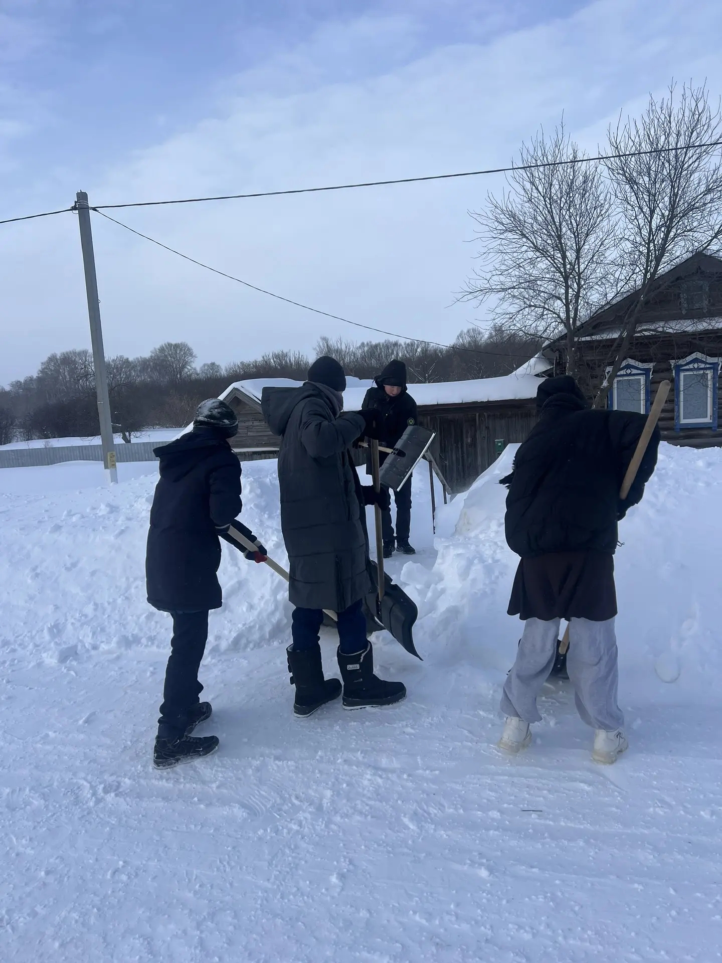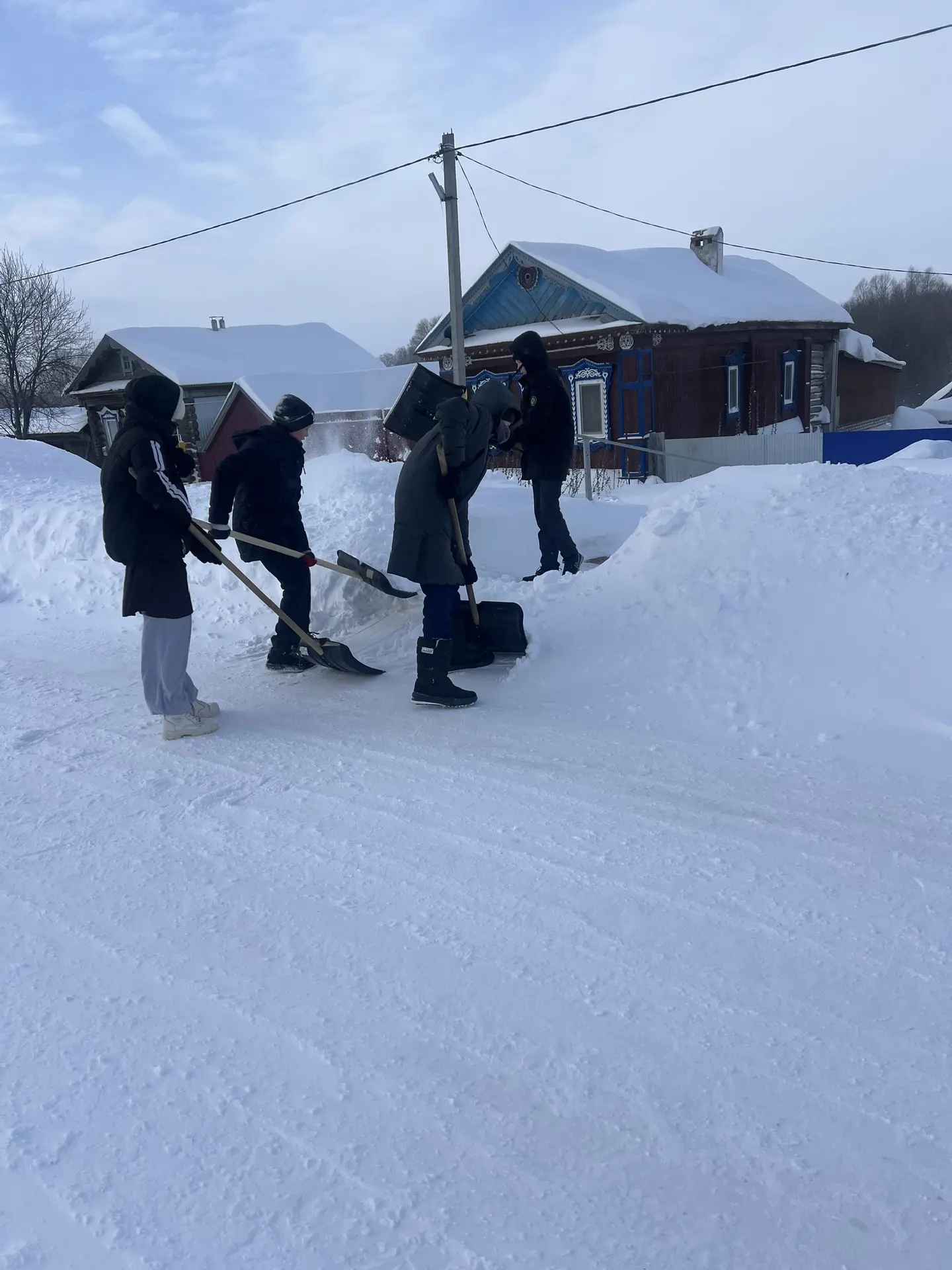 Они организовали добровольческую акцию. Вместе с учителем технологии Торгайкиным Н.В. расчистили от снега дорожки около домов, где живут пожилые жители и семьи участников СВО.