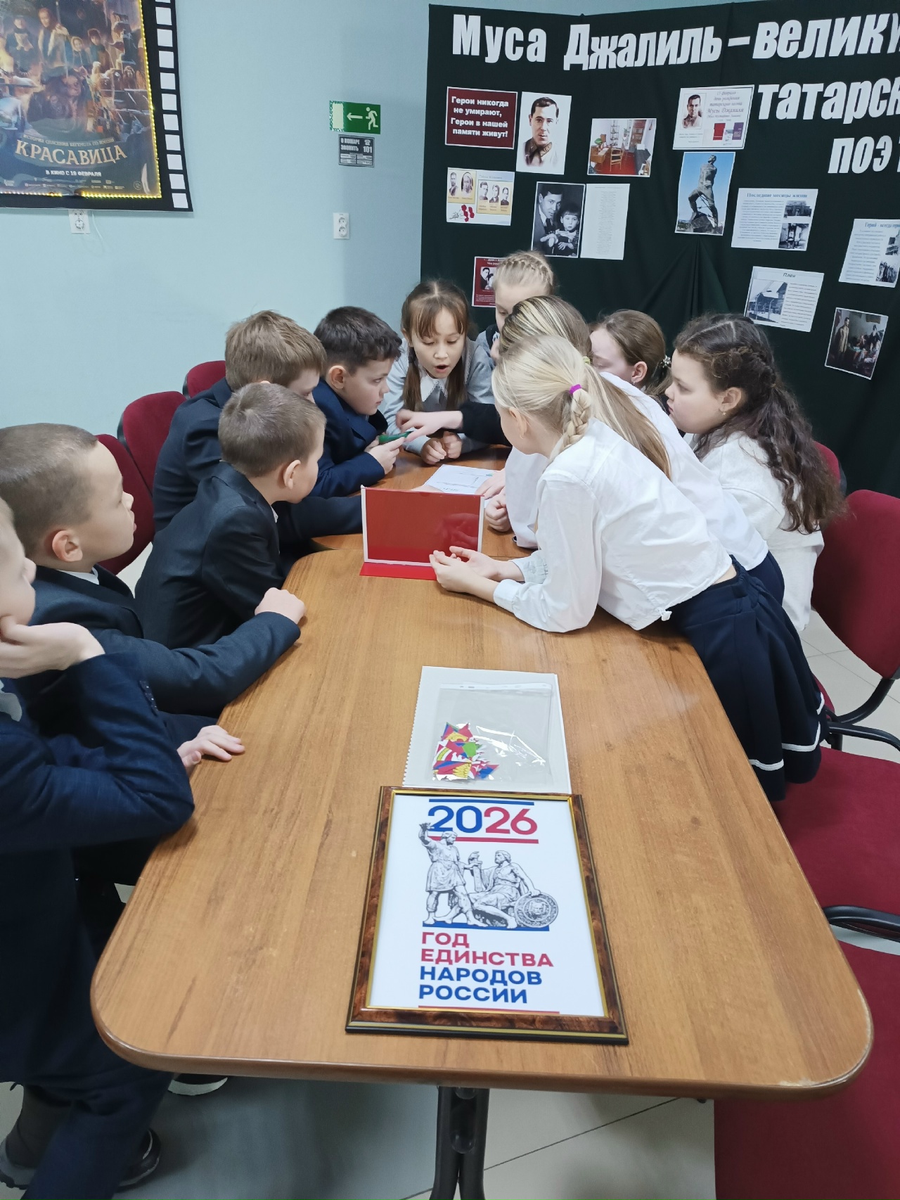 12 февраля 2026 г. в рамках национального проекта «Молодежь и дети» в МБУ МКРЦ «Новый Век» для ребят 3 «В» класса МБОУ «Тетюшской СОШ №1 им. Ханжина П.С.» прошла увлекательная игра-викторина под названием «Моя Россия-мой дом». В начале мероприятия участники были разделены на две команды. Они должны были пройти ряд испытаний и заданий, которые включали в себя вопросы на знание истории. Дети знакомились с государственной символикой, активно принимали участие в играх, отвечали на вопросы викторины, дружно вспоминали русские пословицы и поговорки, узнавали о многообразии народов, населяющих нашу страну, и вспоминали подвиги предков во имя независимости Отечества. За каждый правильный ответ участники получали поощрительные баллы, что добавляло игре соревновательный дух. Последний конкурс был патриотически-творческим на лучшее оформлении афиши к Году единства народов России.