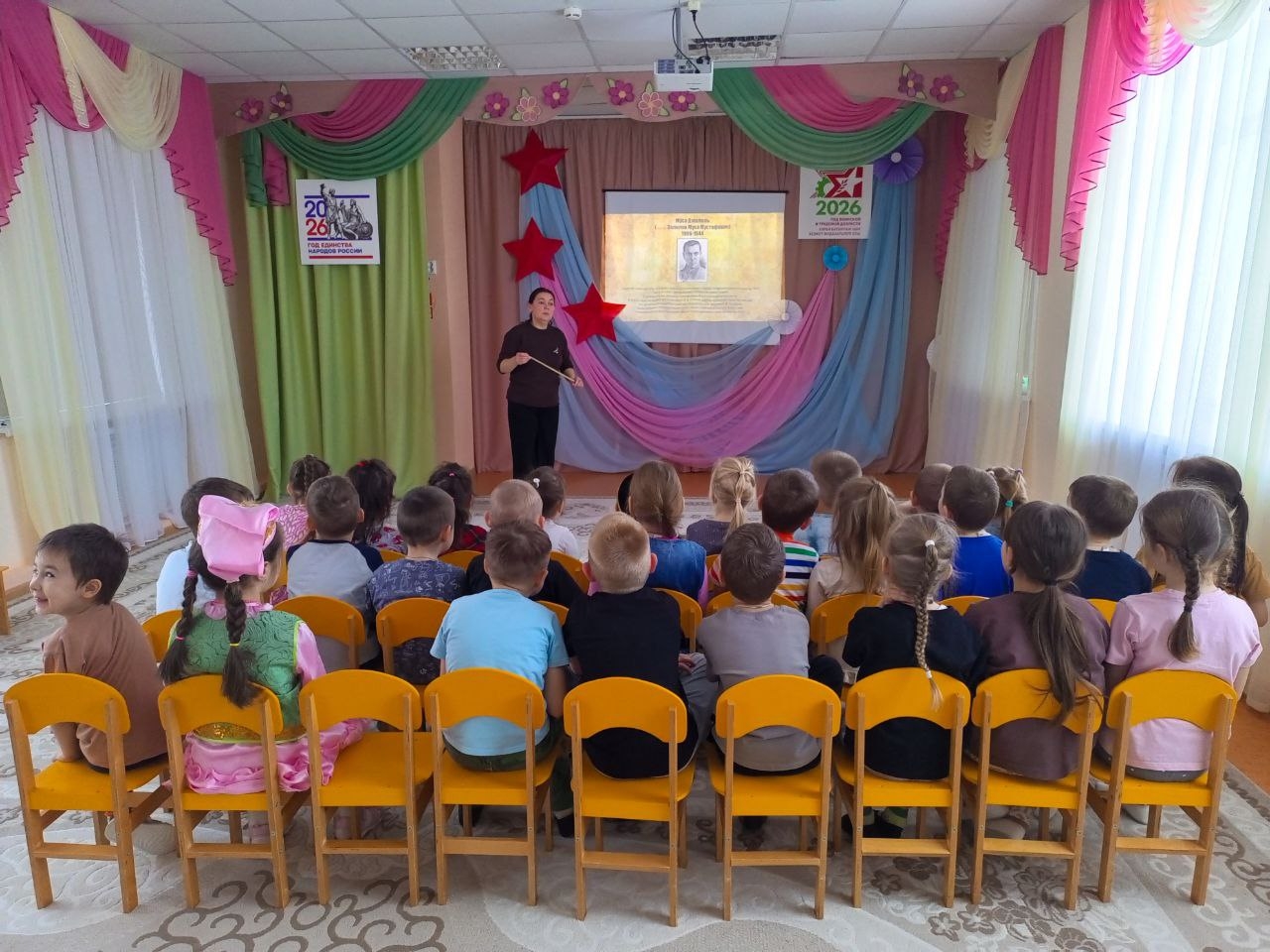 В рамках Года единства народов России, Года воинской и трудовой доблести в Республике Татарстана, а так же в рамках месячника оборонно-массовой, патриотической и спортивной работы и национального проекта "Молодежь и дети" подпроекта "Все лучшее детям" в детском саду «Березка» прошло мероприятие, посвященное 120-летию со дня рождения великого татарского поэта М. Джалиля. Воспитанники познакомились с биографией и творчеством поэта. Юные чтецы исполнили произведения автора, а сведения о жизненном пути и героизме вызвали у детей глубокое восхищение. Поэт жив, пока помнят его стихи. Мы уверены, что ещё не одно поколение будет читать произведения М. Джалиля.