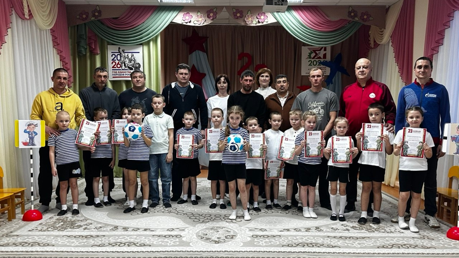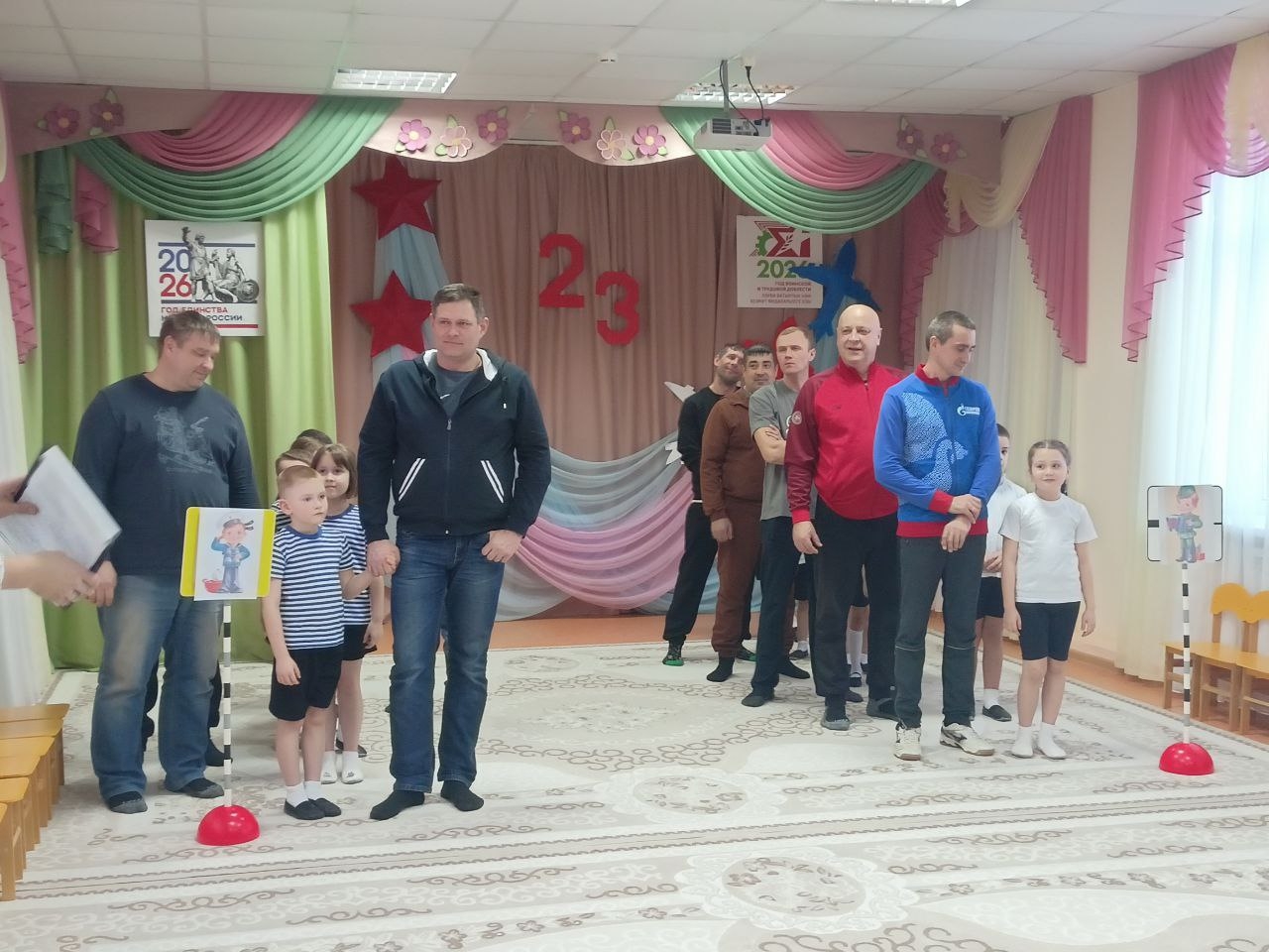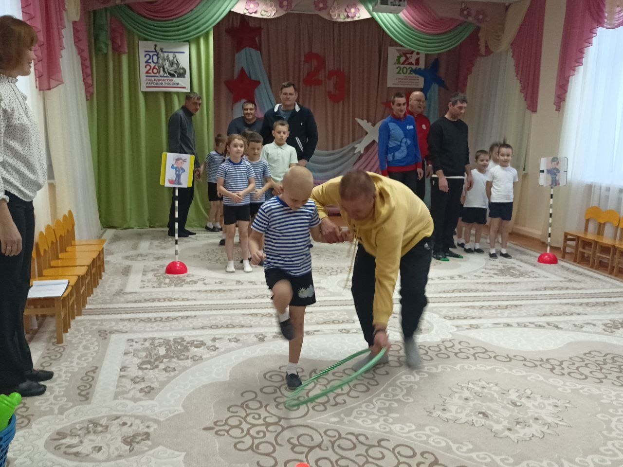 В рамках Года единства народов России, Года воинской и трудовой доблести в Республике Татарстана, а так же в рамках месячника оборонно-массовой, патриотической и спортивной работы и национального проекта "Молодежь и дети" подпроекта "Все лучшее детям" в детском саду «Березка» воспитанники вместе с родителями приняли участие в увлекательном спортивном празднике "Папа и я – спортивная семья", посвященном Дню защитника Отечества. Сегодняшний вечер в нашем детском саду был наполнен смехом, азартом и здоровым соперничеством! Это прекрасная возможность не только провести время с пользой, но и укрепить семейные узы, привить детям любовь к спорту и активному образу жизни.