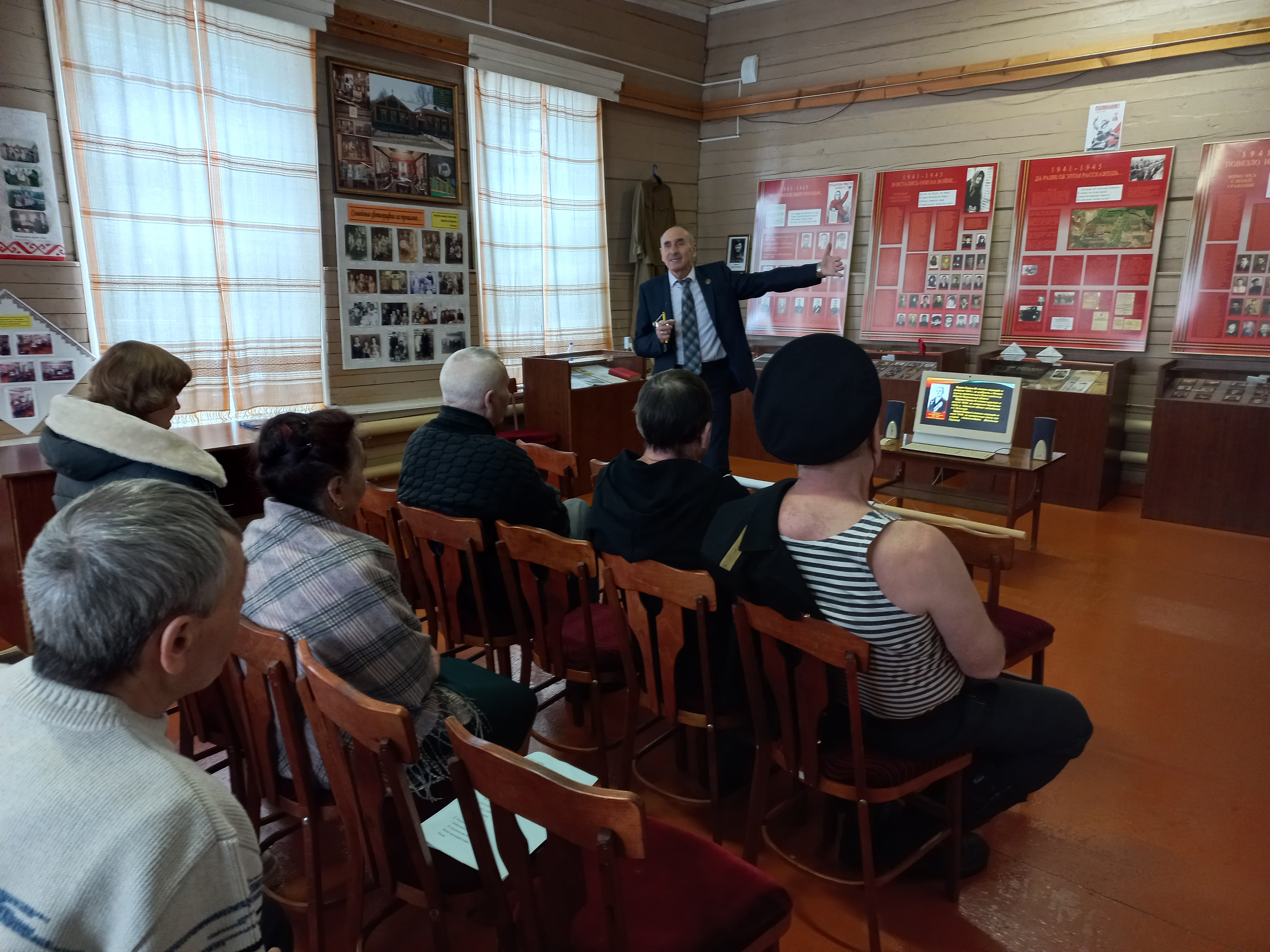 Зав.музеем Пыркин А.А. рассказал о истории возникновения празднования этого дня, об испытаниях, которые выпали на долю армии нашей страны в годы гражданской, Великой Отечественной и локальных войн. Рассказ зав. музея чередовался музыкальными паузами. К мероприятию была оформлена выставка «Они служили в горячих точках», где были представлены фотографии, письма к родителям, благодарственные письма солдат, солдатская гимнастерка из фондов музея участников афганской и чеченской войн. Не могли не остановиться и на сегодняшних событиях. Поименно вспомнили всех, кто сегодня защищает нас на передовой. Звучали пожелания, чтобы быстрее закончилось СВО и ребята живыми вернулись домой с победой.