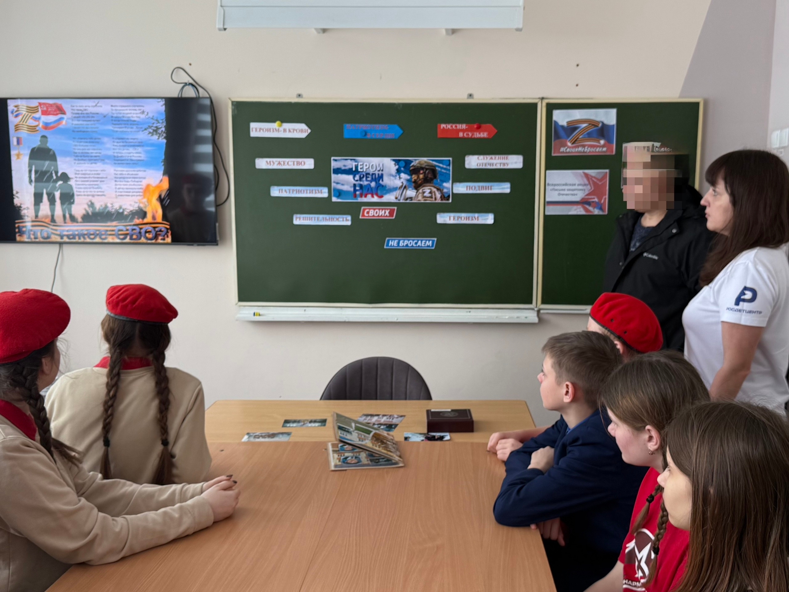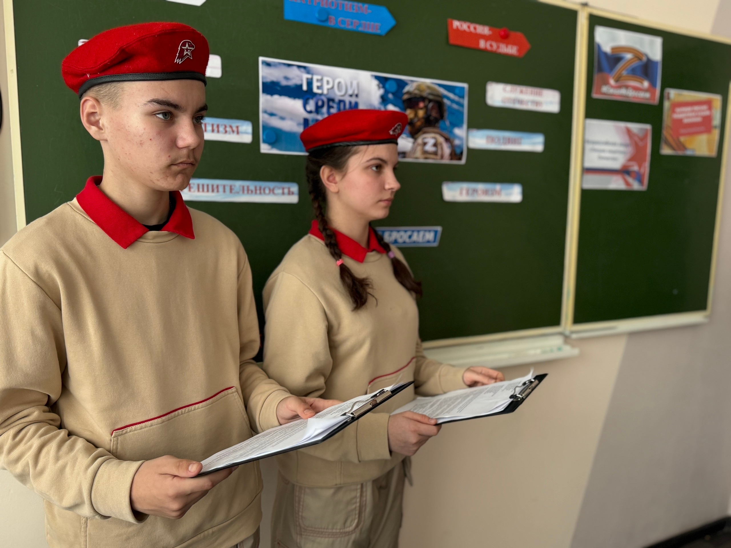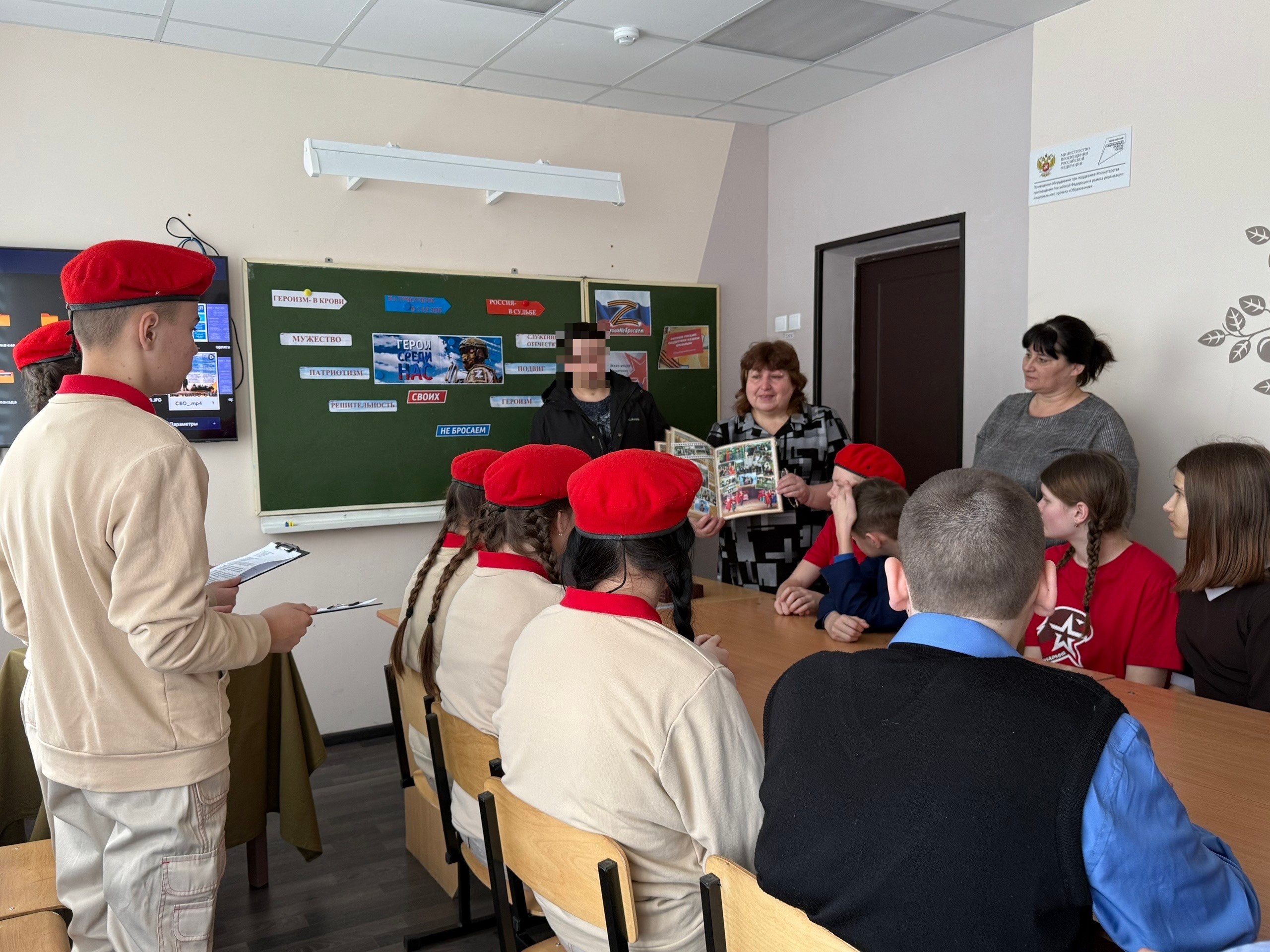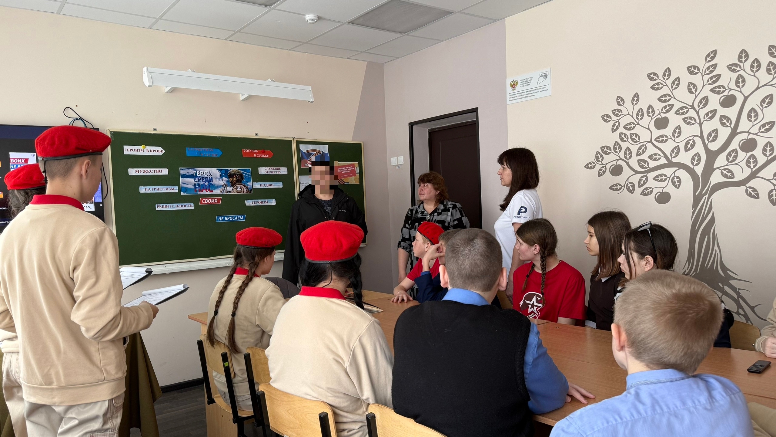 В МБОУ «Нармонская СОШ» прошёл урок мужества «Герои среди нас», организованный советником директора по воспитанию Игнатьевой А.С., руководителем школьного музея Галанцевой Н.А. и юнармейцами школы. Почётным гостем мероприятия стал участник специальной военной операции, выпускник нашей школы. Встреча прошла в формате живой беседы, где юнармейцы смогли задать гостю интересующие их вопросы и получить подробные, искренние ответы.