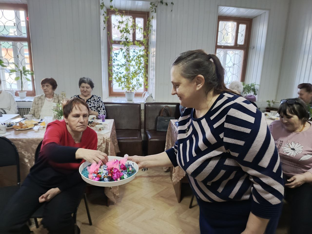Сотрудники Центральной библиотеки провели для местного отделения Союза пенсионеров России библиокафе «По семейным обстоятельствам или в выходные можно…», посвященное Международному женскому дню. Мероприятие проходило в стилистике советского фильма «Служебный роман». Ведущие мероприятия Людмила Прокофьевна и секретарша Верочка в течение вечера погружали присутствующих в атмосферу советской эпохи, создавая уютную и теплую обстановку.
