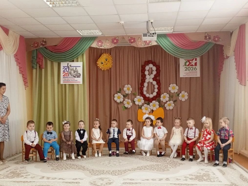 В младших группах детского сада «Березка» прошли замечательные утренники, посвященные Международному женскому дню — 8 Марта! Наши маленькие артисты подготовили трогательные выступления: читали стихи, пели песенки и танцевали. Каждый ребенок старался подарить частичку своего тепла и радости. Мы уверены, что улыбки и счастливые глаза наших любимых мам и бабушек стали лучшей наградой для малышей! Пусть в ваших домах всегда царят любовь, тепло и уют! Желаем вам весеннего настроения, нежных улыбок и ярких впечатлений каждый день!