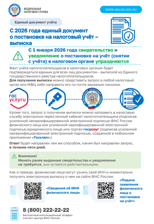 С 2026 года единый документ о постановке на налоговый учет - выписка!