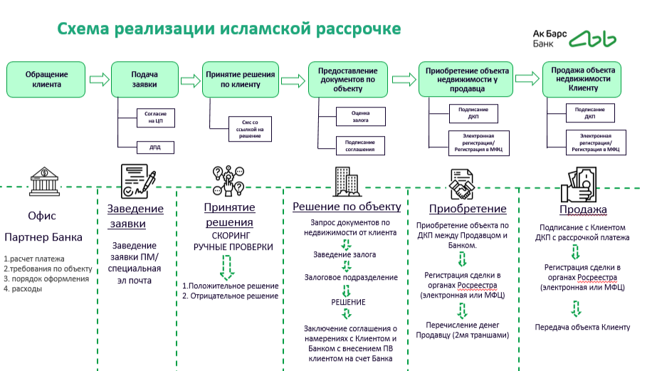 ПАО «АК БАРС» БАНК, являющийся уполномоченным банком по обслуживанию социальных выплат для молодых семей на улучшение жилищных условий, предлагает к внедрению продукт «Исламская ипотека», который имеет соответствующий сертификат Духовного управления мусульман Республики Татарстан.