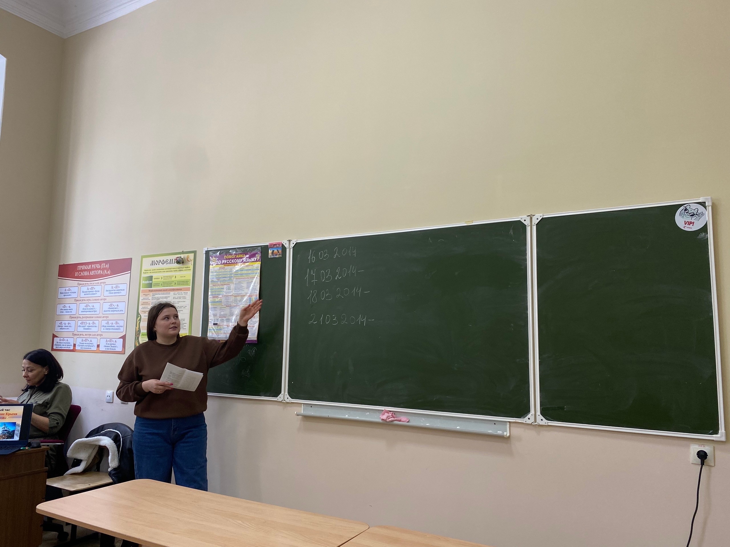 В ходе встречи ребята погрузились в историю событий «Крымской весны», обсудили значение референдума 2014 года и тот исторический выбор, который сделали жители полуострова. Педагог наглядно показала неразрывную связь Крыма с Россией, уходящую корнями вглубь веков.