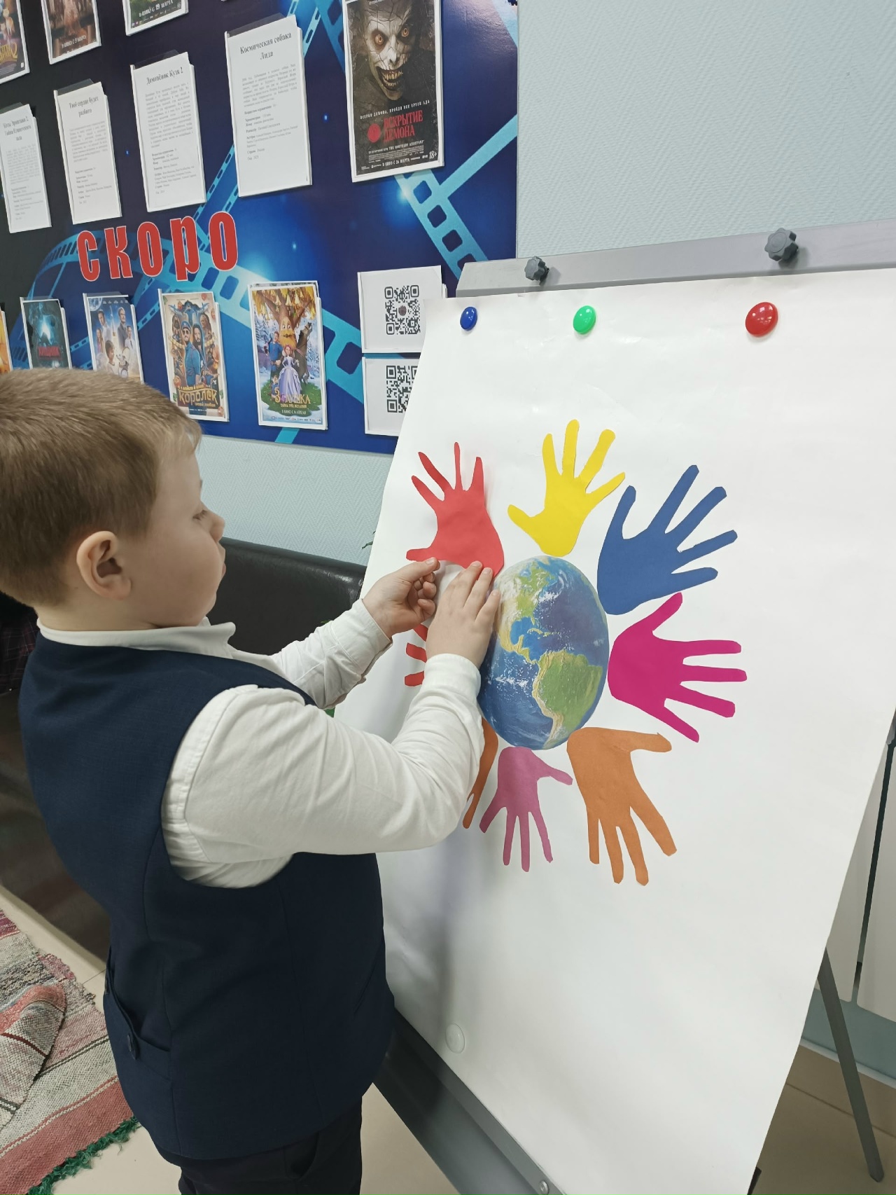 Ведущие мероприятия поддерживали эту беседу, подчеркивая, что различия делают нашу страну богаче и интереснее, а единство – сильнее, что народы объединяются в одно большое государство ради достижения общей цели — обеспечения единства, мира и согласия между всеми народами. Также ребятам напомнили, что в этом году отмечается 81-я годовщина Великой Победы и что идет Специальная военная операция. Затем дети прикрепили бумажные ладошки на рисунок планеты Земля в напоминание о том, что наша сила в дружбе, сплоченности и единстве.