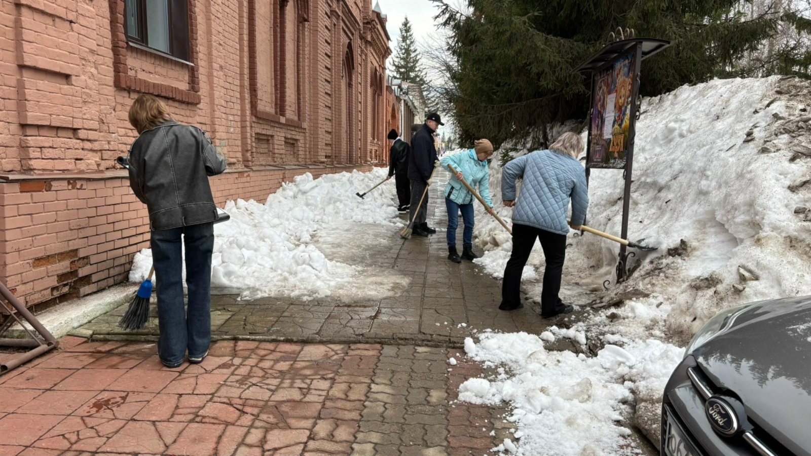 Мы активно поработали на прилегающей территории: ворошили и раскидывали плотные снежные кучи. Зачем? Всё просто: рыхлый снег тает в разы быстрее! Мы стараемся, чтобы путь к нашему кинотеатру стал сухим и комфортным для вас как можно скорее.