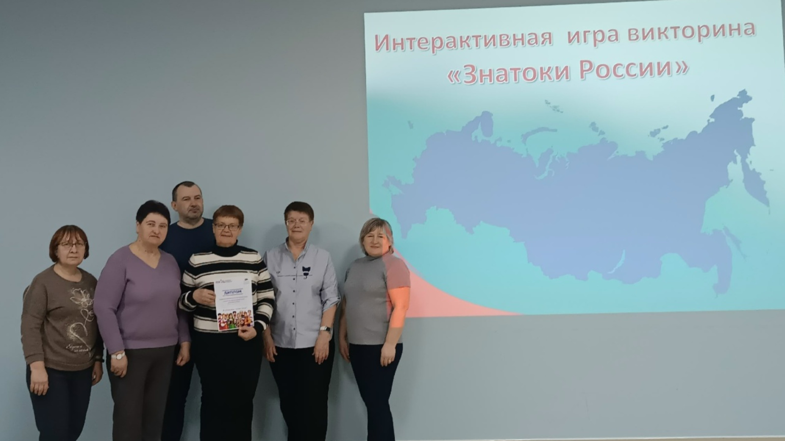 Сегодня, 9 апреля, в МБУ МКРЦ «Новый Век» состоялась игра-викторина «Знатоки России». Мероприятие было проведено в рамках национального проекта «Семья» и Года единства народов России. В викторине приняли участие люди «серебряного» возраста — команда под названием «Всезнайки».