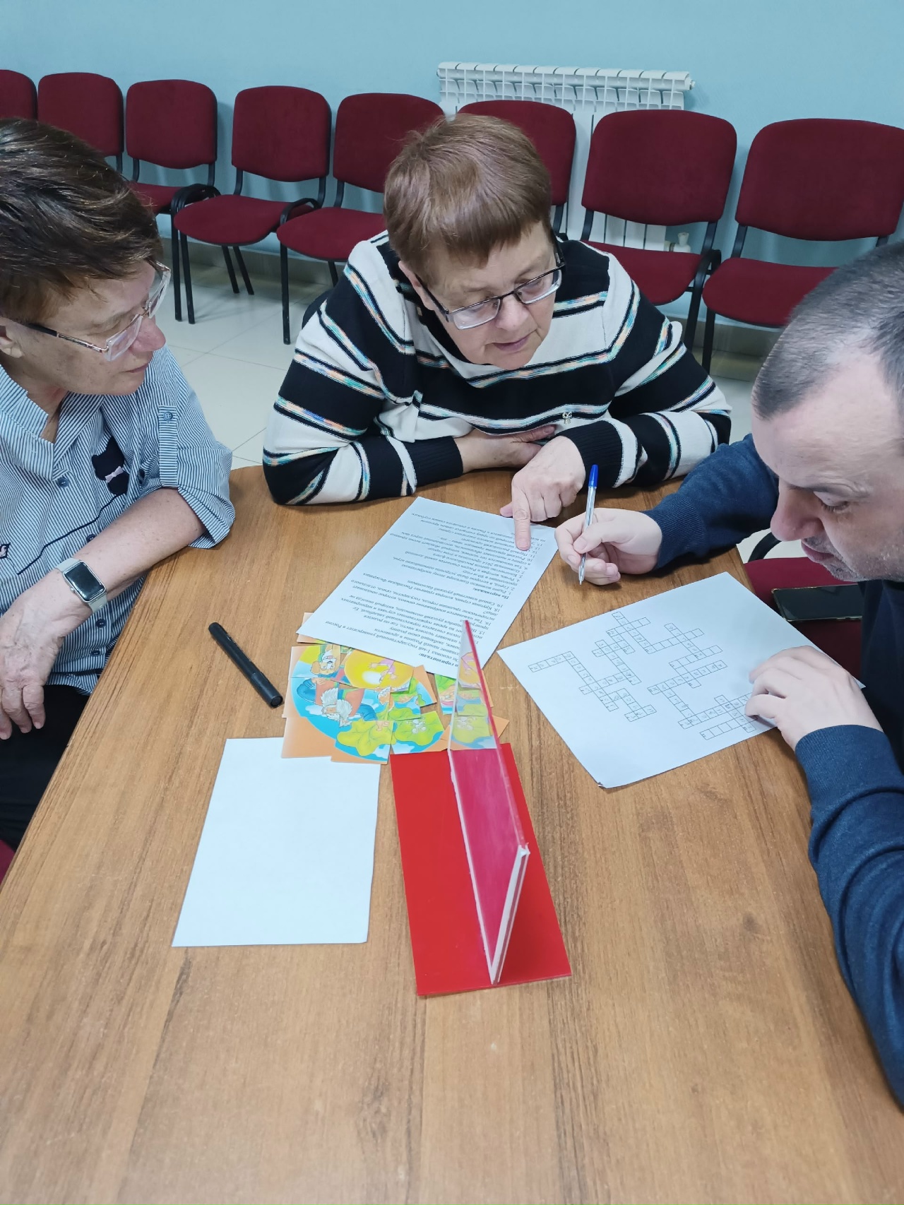 Далее была интеллектуально-творческая игра «Музыкальный эрудит» — угадывание мелодий, композиторов, а также песен, связанных с Россией; тест для киноманов — угадать советский фильм по кадру; и в конце — разгадывание кроссвордов — увлекательное занятие, которое тренирует память, логику и эрудицию. Тематика кроссворда была связана с Россией.