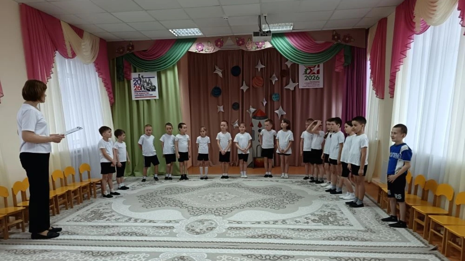 Атмосфера праздника была по настоящему вдохновляющей: звучали песни о космосе, на стене висели планеты нарисованные ребятами. «Сегодня каждый из вас прошёл свою маленькую космическую подготовку! обратился к ребятам ведущий. Кто знает, может быть, кто то из вас однажды отправится к настоящим звёздам!»