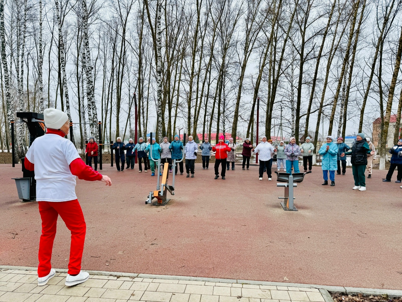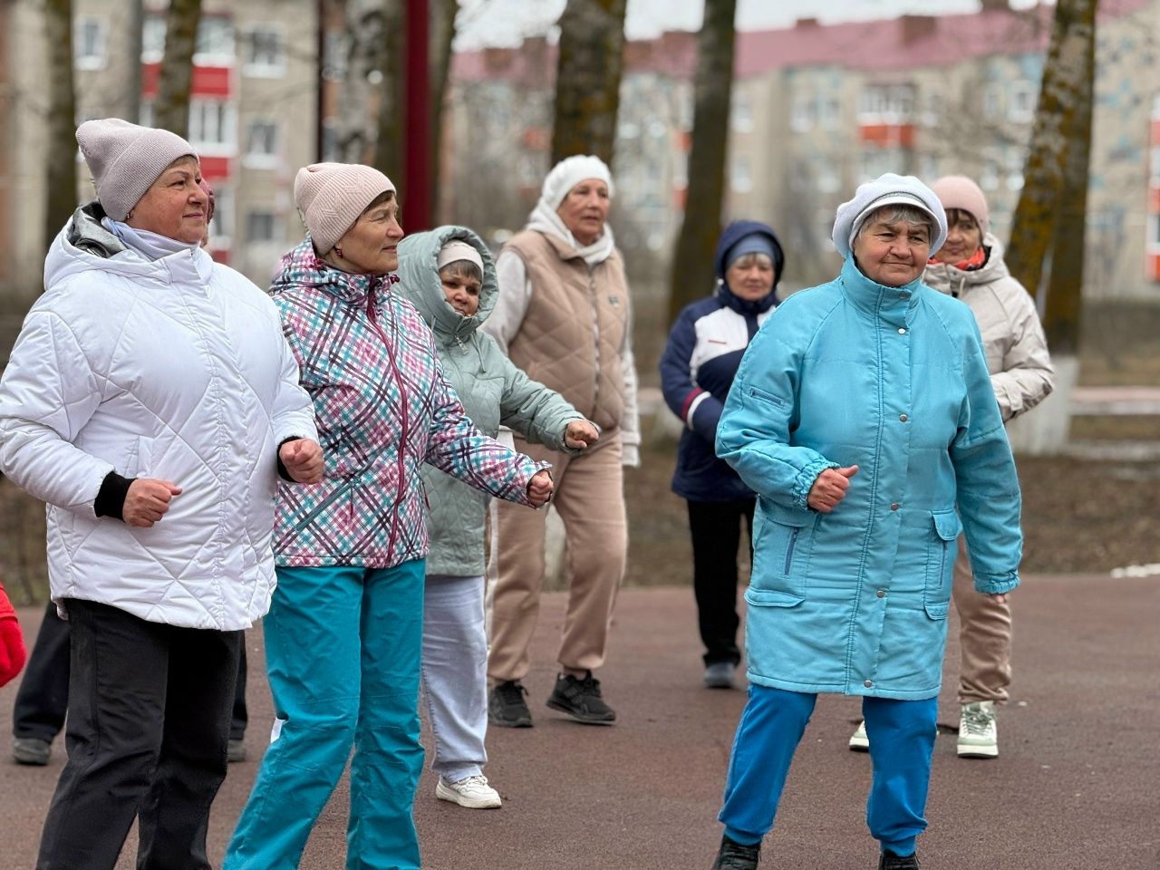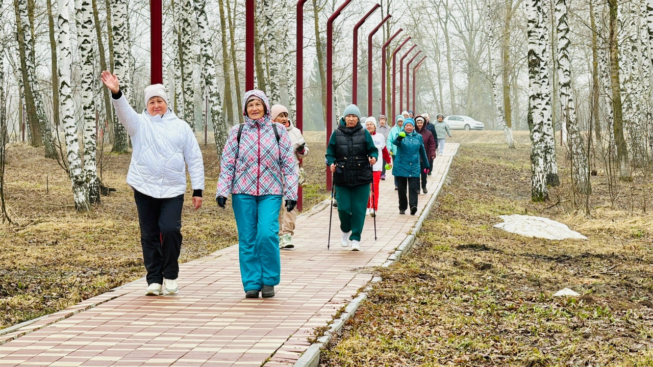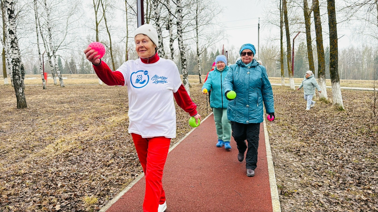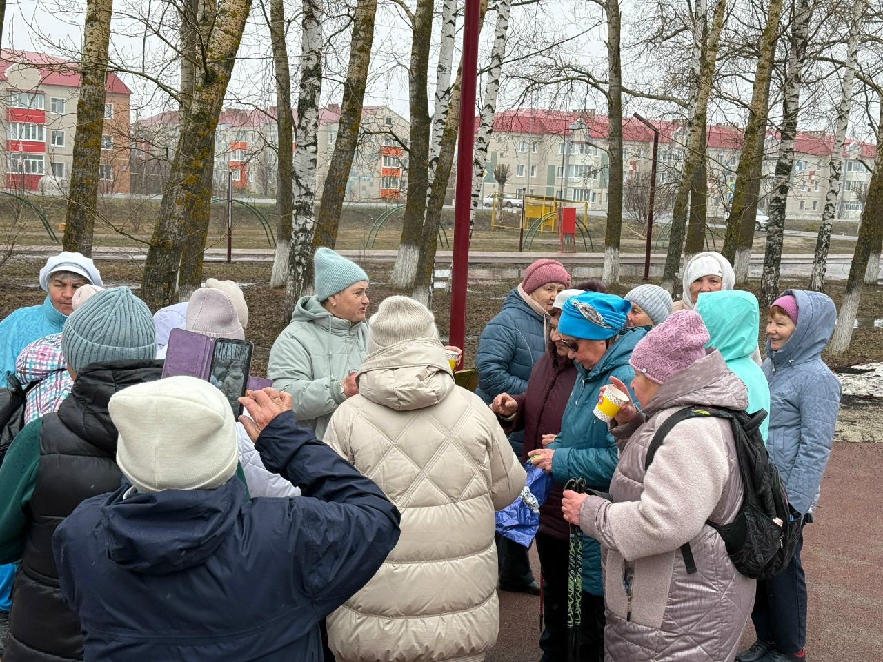 Руководитель группы «Активное долголетие» и «серебряный» волонтёр Татьяна Петрова организовала зажигательный флешмоб, участники акции благодаря активной музыкальной зарядке настроились на пеший маршрут.