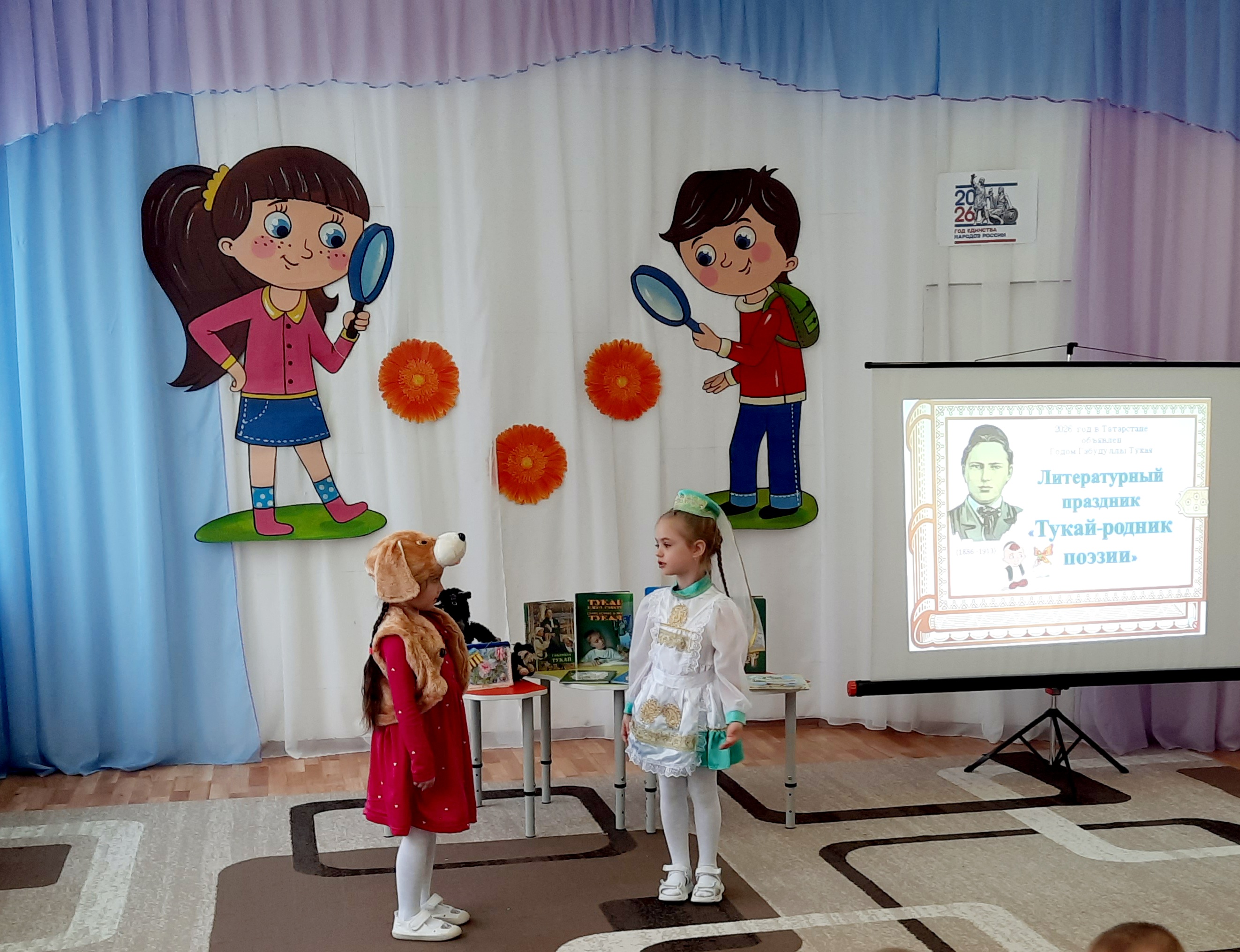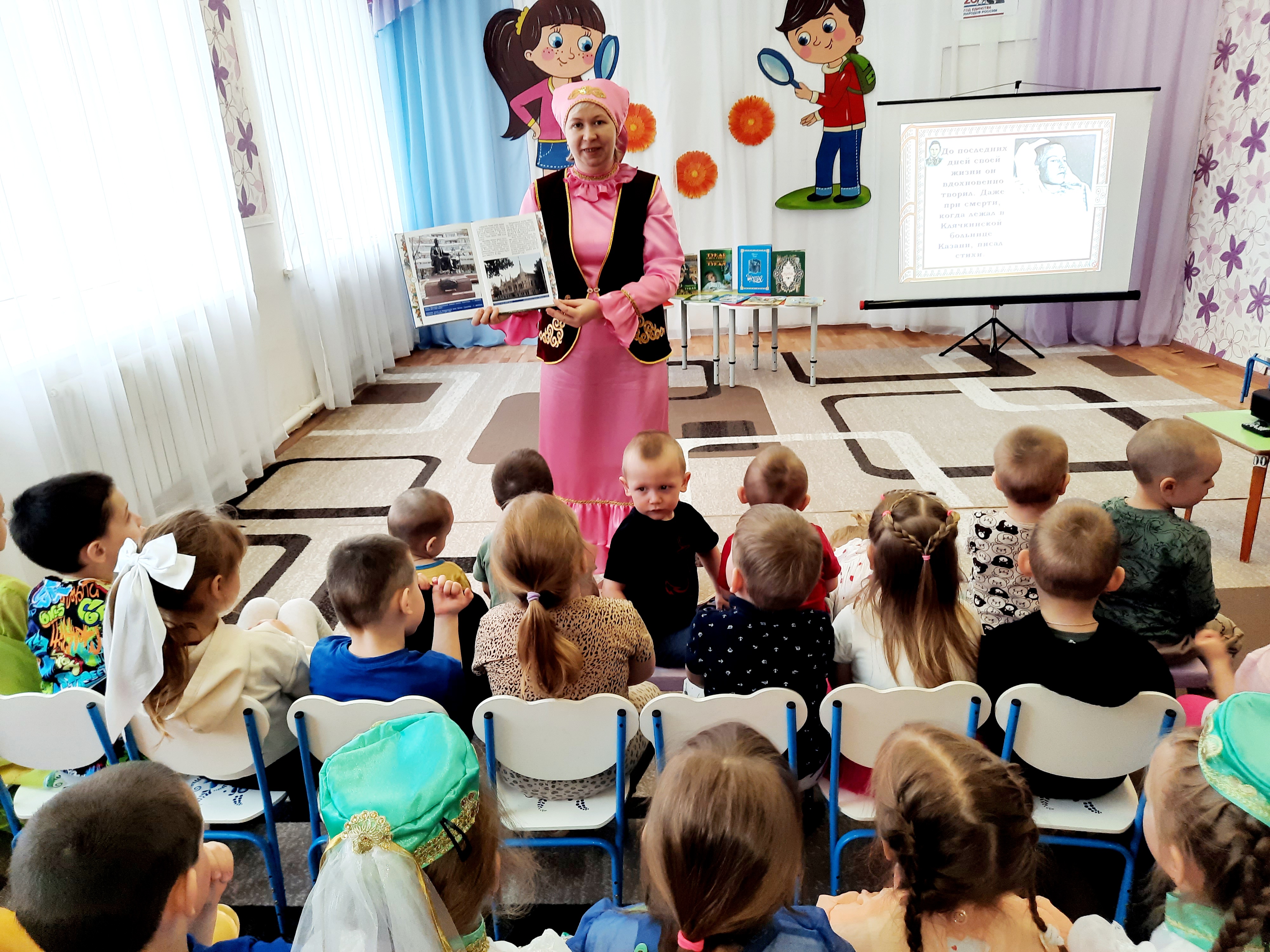 Сегодня сотрудница Центральной детской библиотеки Плаксина Анна Александровна провела для детей детского сада "Малыш" беседу, посвященную 140-летию со дня рождения великого татарского поэта Габдуллы Тукая. На мероприятии дети познакомились с биографией поэта, узнали о его трудном детстве и творческом пути. Была оформлена книжная выставка, включая персонажи из известных сказок Г. Тукая. Дети прочитали стихи поэта: "Киска озорница", "Забавный ученик", "Мотылек" и другие. Педагог по обучению татарскому языку Лилия Фаритовна провела с ребятами игру со сказочным героем Шурале и в завершении беседы показала ребятам мультфильм «Шурале», созданный по мотивам одноимённой поэмы Г. Тукая.