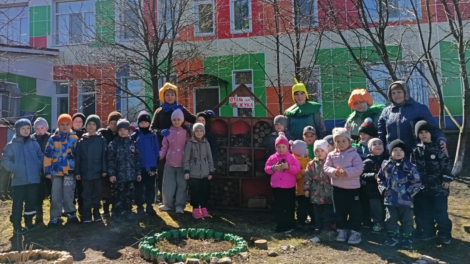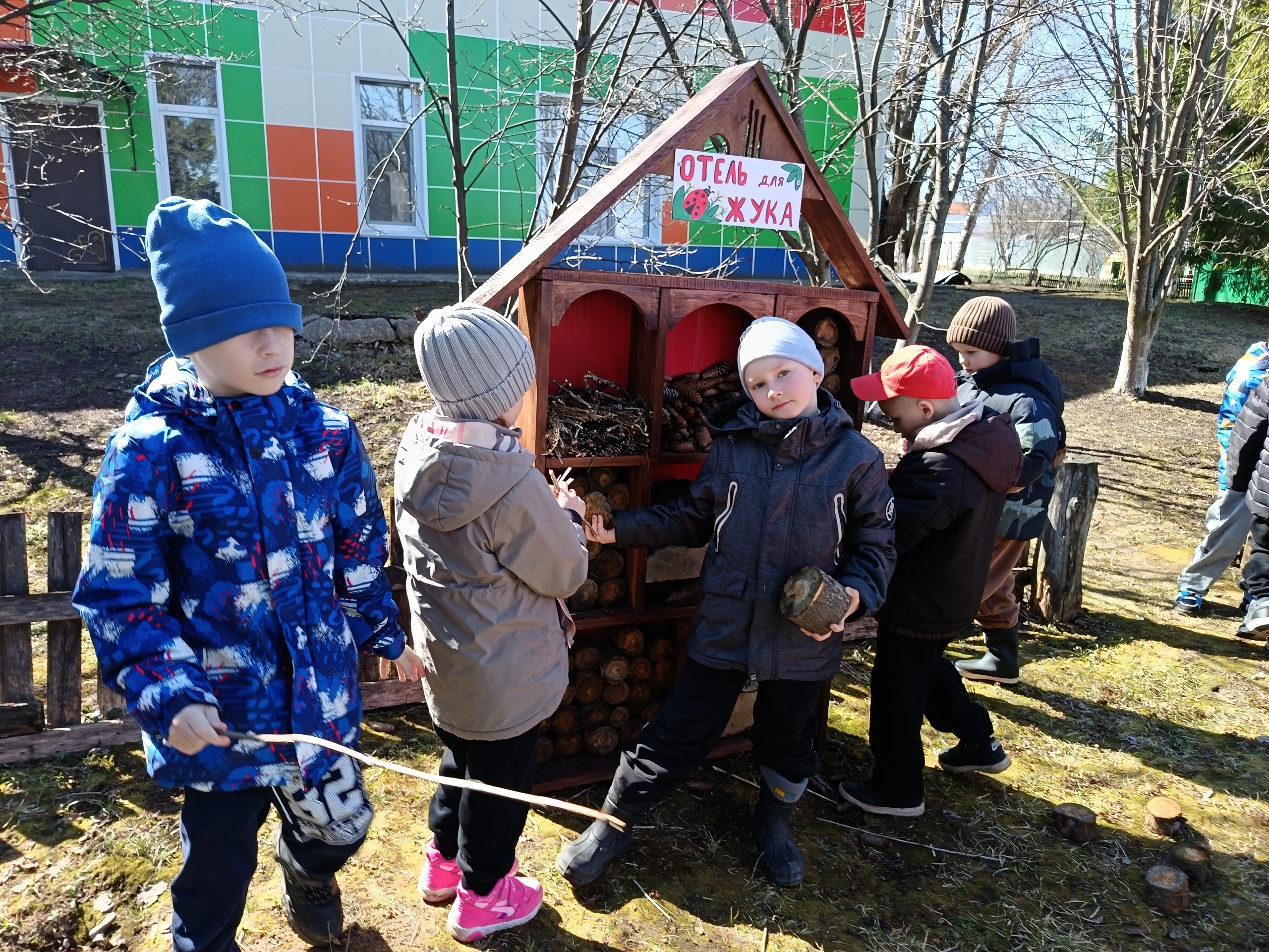 Каждый ребёнок внёс свой вклад: кто-то укладывал камни, кто-то веточки, а кто-то складывал брёвнышки. Мы старались сделать домик, чтобы жукам было уютно и безопасно.
