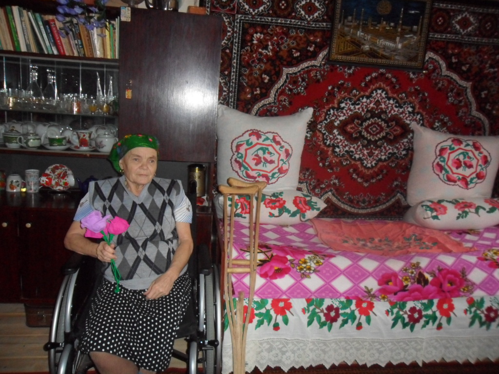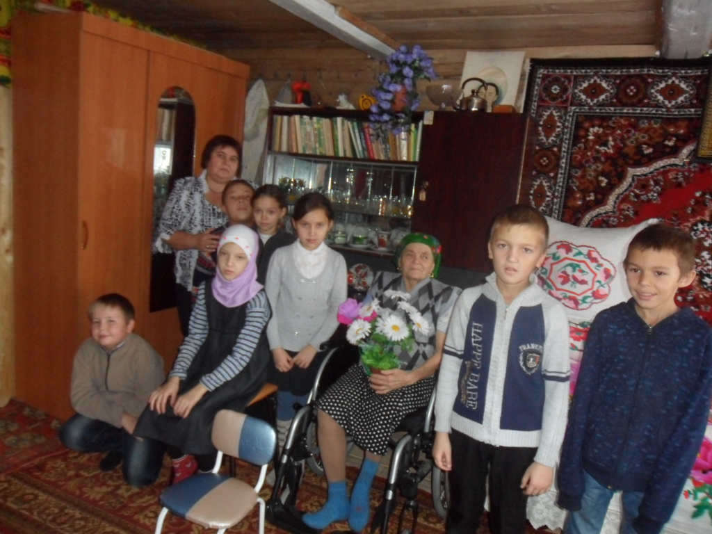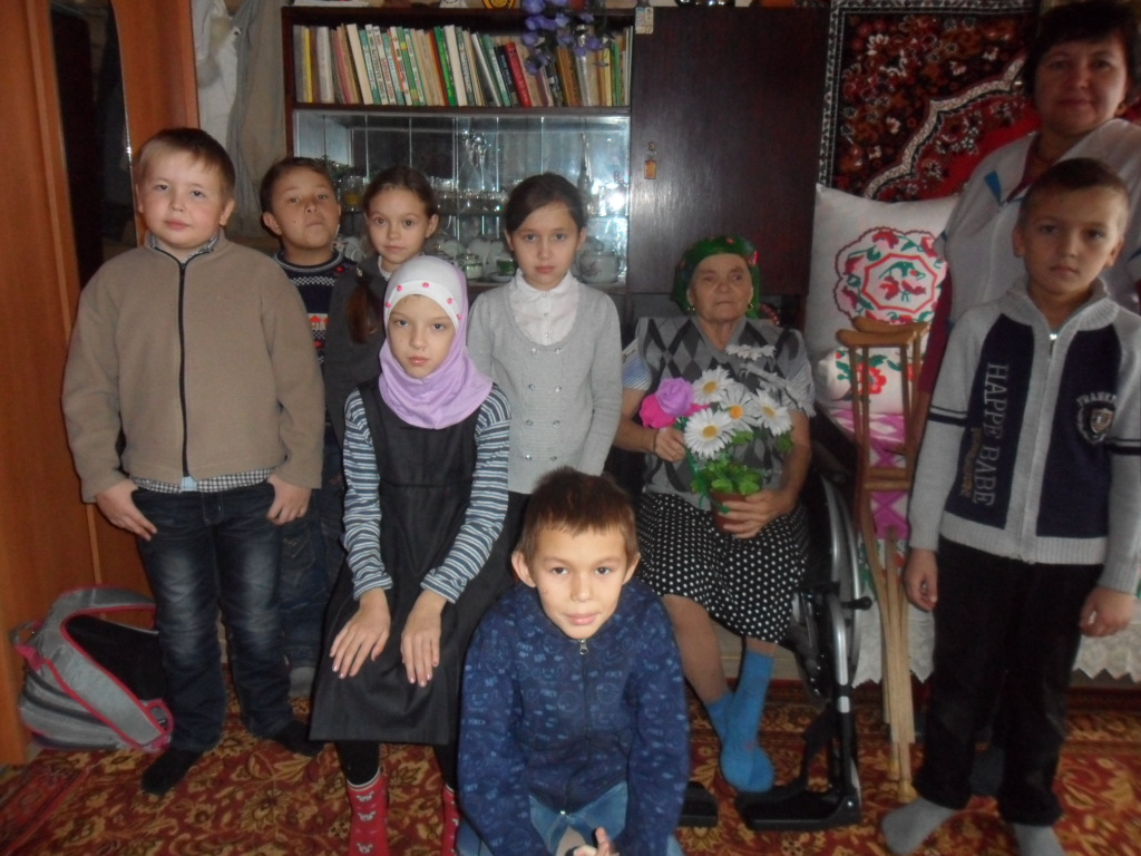 В День Всемирного Дня инвалидов ученики и учителя совместно с фельдшером Утямишевского ФАПа Мазитовой Л.Г.посетили инвалида с детства Хамитову Сару Гарифулловну. Сара Гарифулловна - удивительный человек , никогда ничего не требует, не просит,старается делать всё сама и в огороде и по дому, хоть и ходит всю жизнь на костылях. Очень обрадовалась,что навестили её.