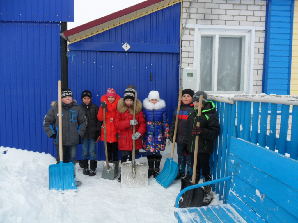 В рамках проведения месячника гражданско-патриотического воспитания, посвящённого Дню защитника Отечества, учащиеся нашей школы-сад посетили семью погибшего военнослужащего в годы ВОВ Хамитову Сару Гарифулловну, которой помогли в очистке снега.