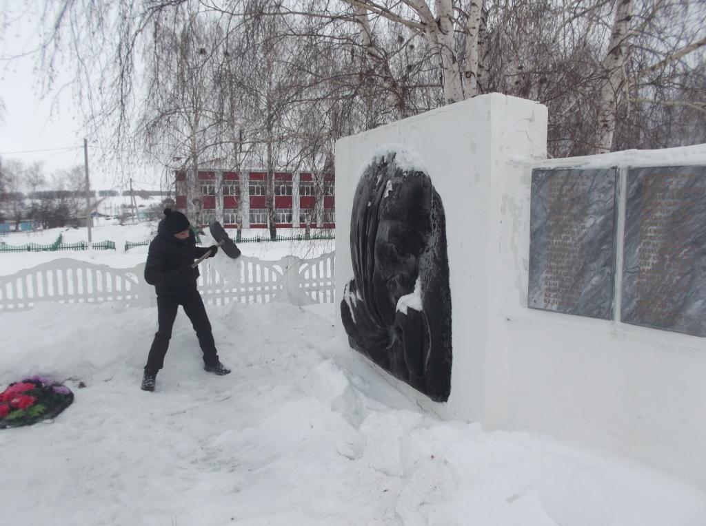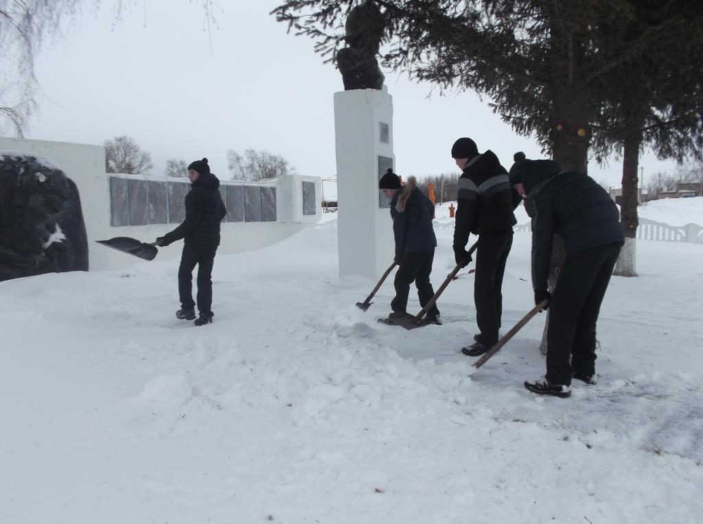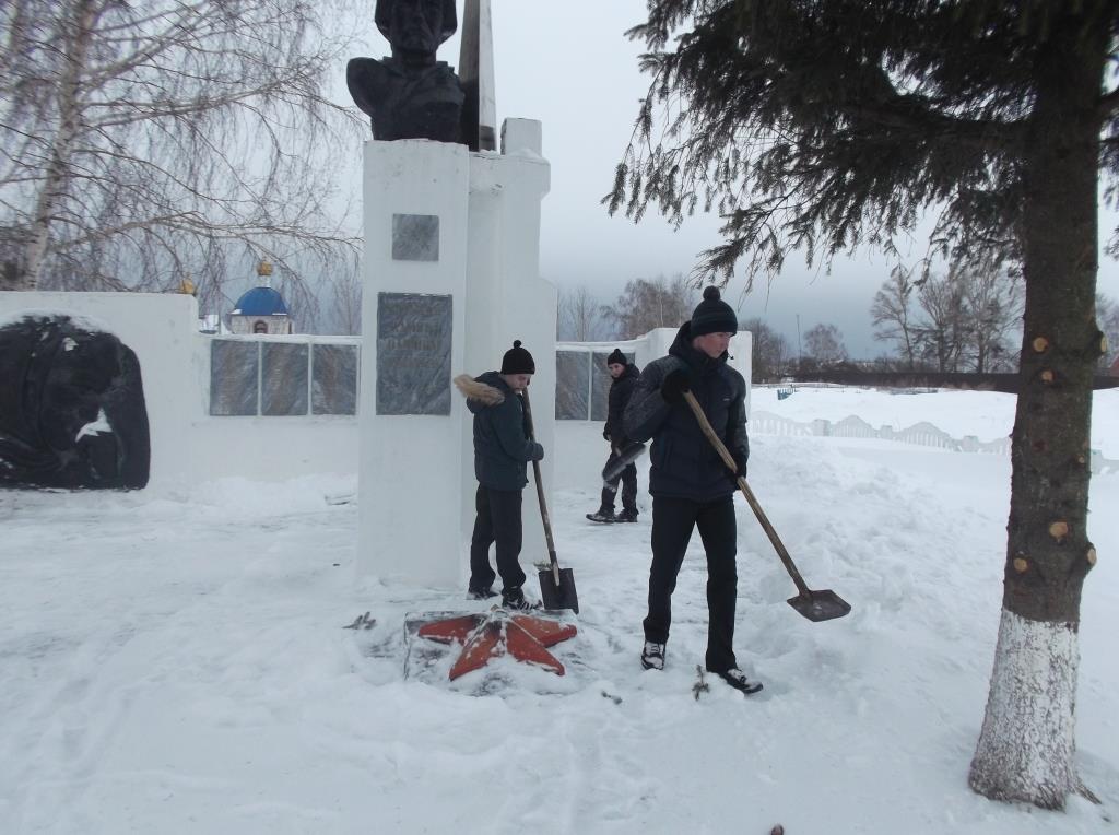 Учащиеся МБОУ «Кильдюшевская СОШ» ведут шефство над обелиском памяти павших земляков. 12 февраля учащиеся 8 класса с классным руководителем Кирилловой Т.Г. и руководителем отряда «Форпост» Исаевым Н.С. почистили снег у обелиска.