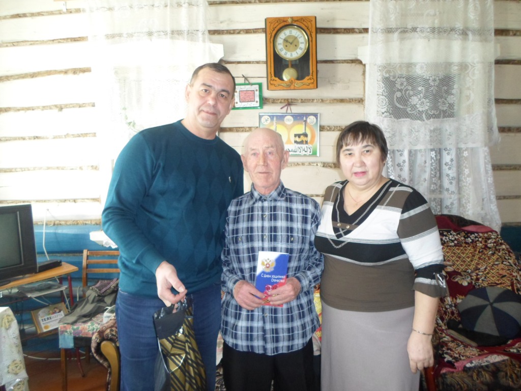 23 февраля и.о. руководителя Исполкома Большетарханского сельского поселения Шамсутдинов И.М. и работники культуры поздравили ветеранов Великой Отечественной войны с Днем Защитника Отечества! Пожелали крепкого здоровья, мирного неба над головой, долголетия, подарили подарки и открытки.