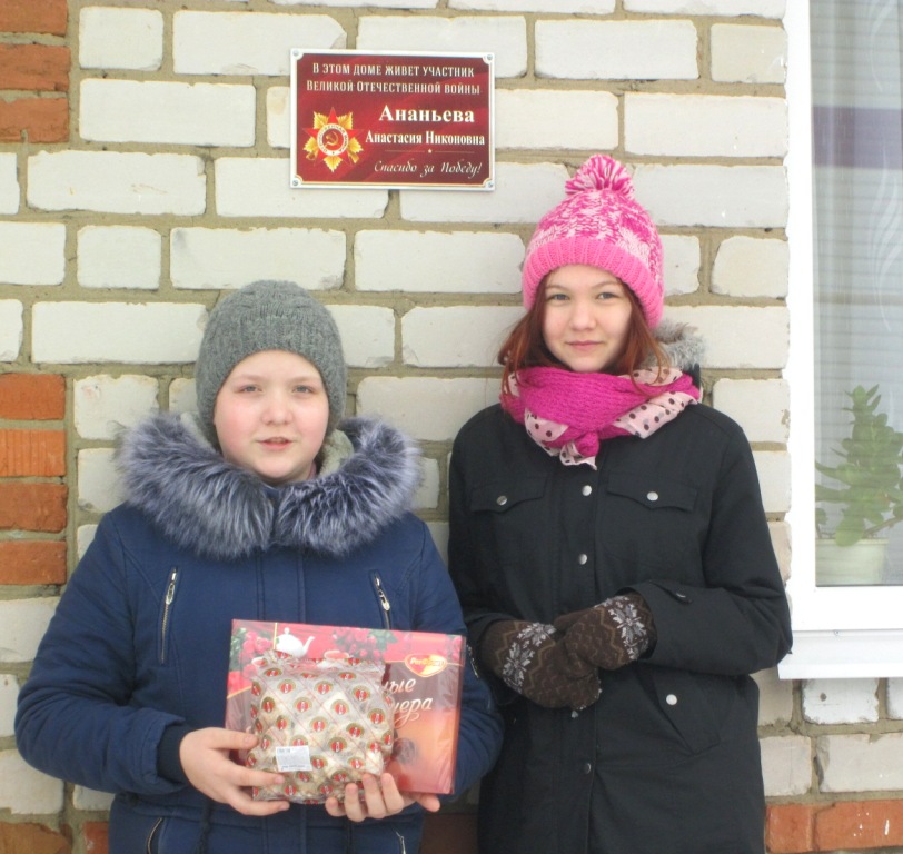 Учащиеся 8 "В" класса (кл. рук. Копушова Т.В.) посетили ветерана Великой Отечественной войны - Ананьеву А.Н., защитницу Сталинграда. Анастасия Николаевна болеет и не может встретиться с учащимися, но они помнят ее рассказы о трудной военной и послевоенной жизни. Учащиеся 7 "Б" класса (кл. рук. Самойлова А.Н.) посетили ветерана труда Синилину Н.Н. и убрали снег.