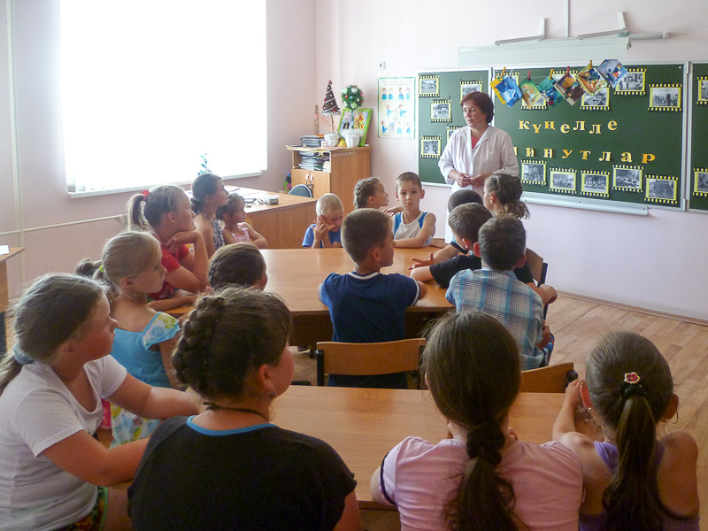 22 июня для ребят пришкольного оздоровительного лагеря «Дуслык» стал самым насыщенным и памятным. С утра день традиционно начался с зарядки и завтрака, после которого мальчишки и девчонки отправились на профилактическую беседу с медицинской сестрой ГАУЗ ЦРБ Михайловой Людмилой Александровной. Она побеседовала с воспитанниками на тему «Вредные привычки, тебе совсем не друзья!» В завершении беседы, слово было предоставлено инспектору по профилактике семейного неблагополучия и правонарушений среди несовершеннолетних Сачковой Марине Анатольевне. В ходе беседы с инспектором, ребята выполнили тест «Сможешь ли ты устоять?!» и с большим удовольствием поиграли в игру «Путешествие в царство хороших привычек».