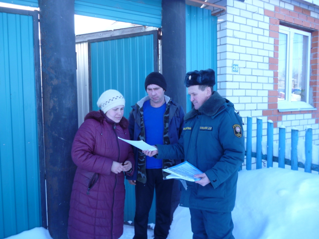 Накануне такой обход сотрудники МЧС организовали в одном из населенных пунктов совместно с главой сельского поселения. Цель подобных обходов - предупредить жителей об обязательных правилах пожарной безопасности. В зимний период профилактика борьбы с пожарами особенно актуальна, эксплуатация электронагревательных приборов и печей, нарушения требований пожарной безопасности, шалости детей с огнем, неосторожное обращение с пиротехническими изделиями становится причинами многих пожаров.