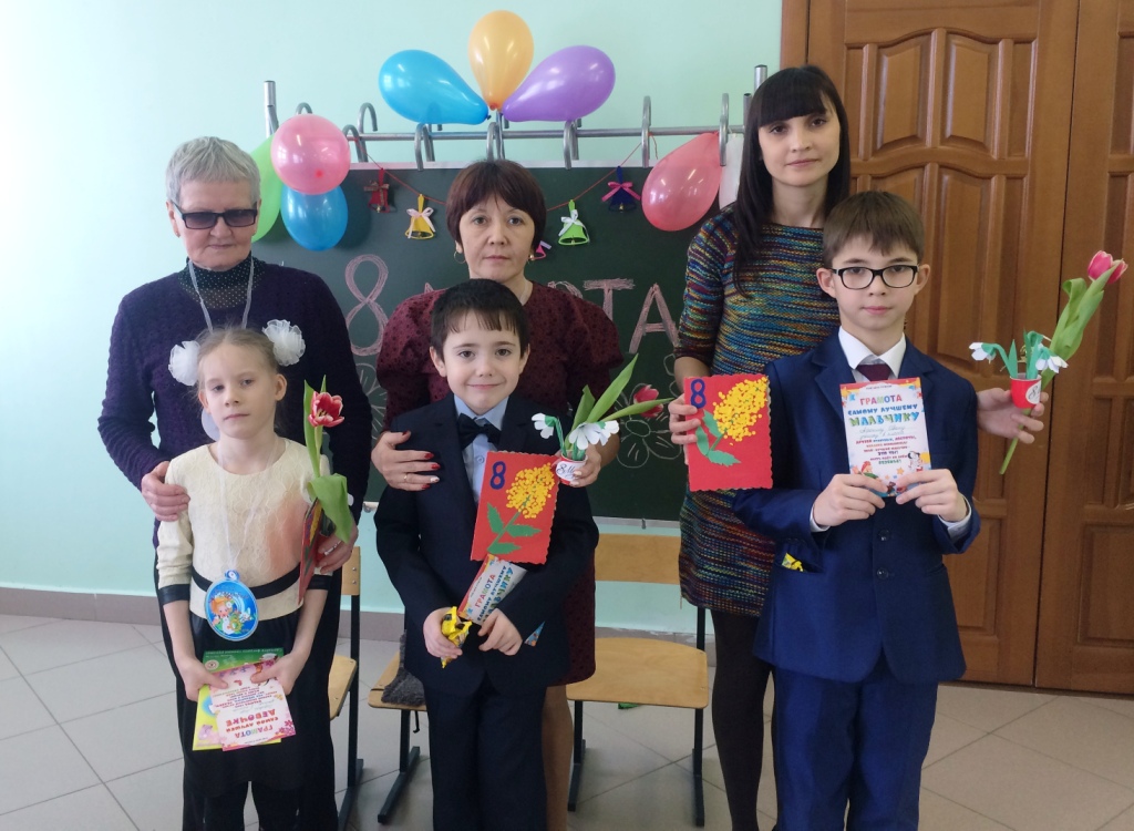 С огромным трепетом и волнением готовились учащиеся 1 коррекционного класса совместно с классным руководителем Емельяновой Е.П. к празднику 8 Марта. Для своих мам и бабушек ребята исполнили песни, танцы и стихи. А во время веселых праздничных конкурсов ученики, смогли продемонстрировать какие они мамины помощники, они стирали, наряжали мам и накрывали для них праздничный стол. В завершении концертной программы состоялось чаепитие, на котором, мамы получили подарки, сделанные своими руками, грамоты и цветы.