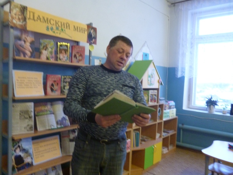 В Монастырской поселенческой библиотеке прошла встреча семейных пар «И это время называется весна». Мужчины читали своим любимым женщинам стихи Есенина, Симонова, Пушкина. В этот вечер все самые добрые слова были для наших милых дам. Все дружно участвовали в весёлых конкурсах и викторинах.