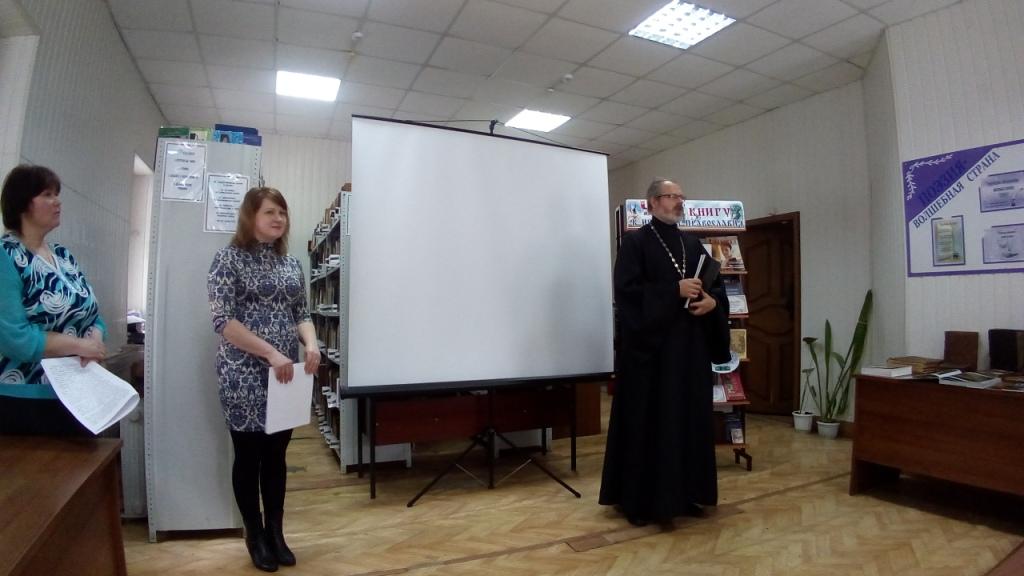 Присутствующие были ознакомлены с историей возникновения праздника, с историей выпуска первой печатной православной книги «Апостол», с именем первопечатника Ивана Федорова, которое хорошо известно многим со школьной скамьи. Отец Валентин выступил перед аудиторией, отметив, что нынешняя молодежь мало читает, отдавая предпочтение электронным гаджетам. Он посоветовал молодому поколению не просто читать, а читать нужные и полезные книги. Затем он в фонд библиотеки подарил несколько выпусков журнала «Православный собеседник».